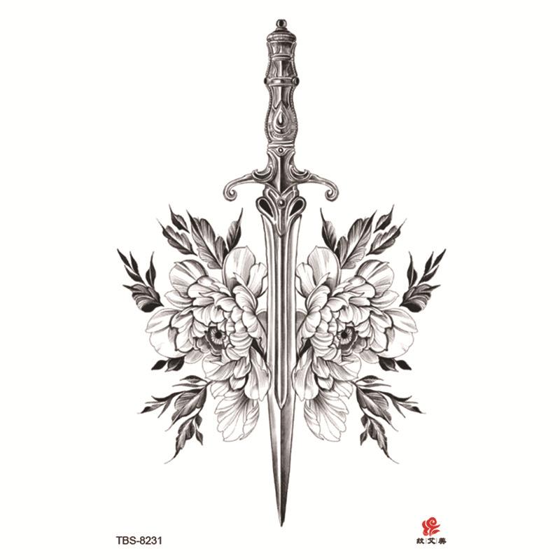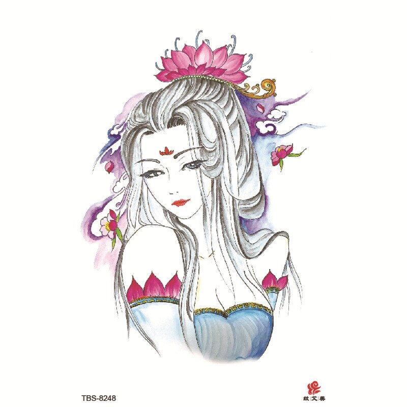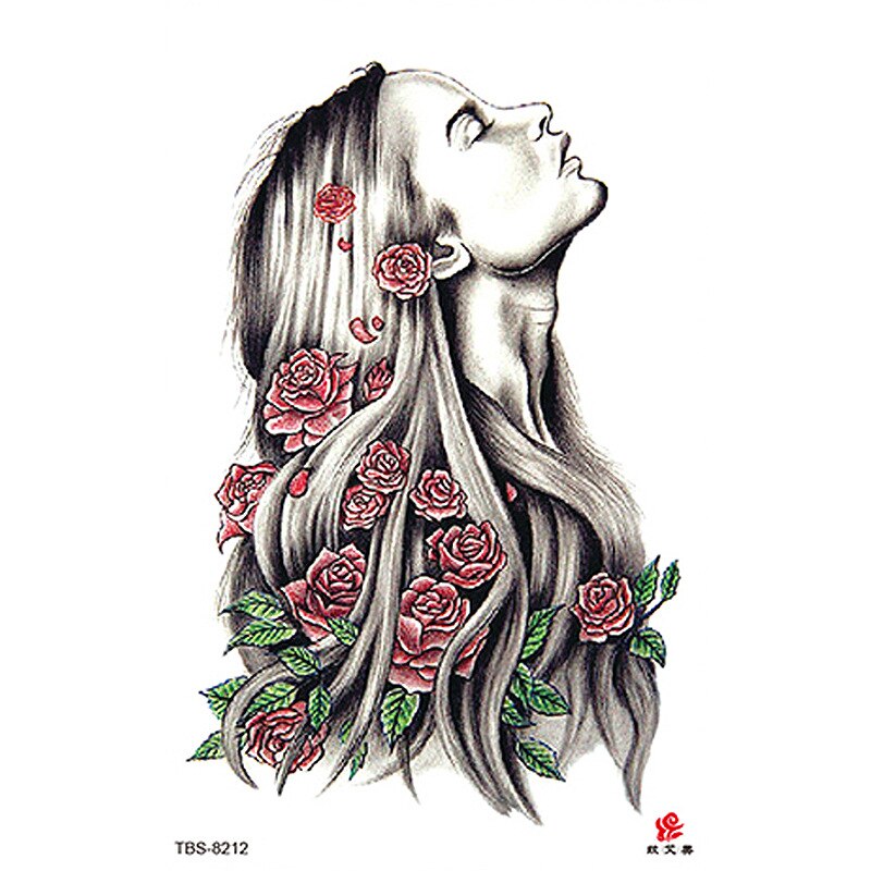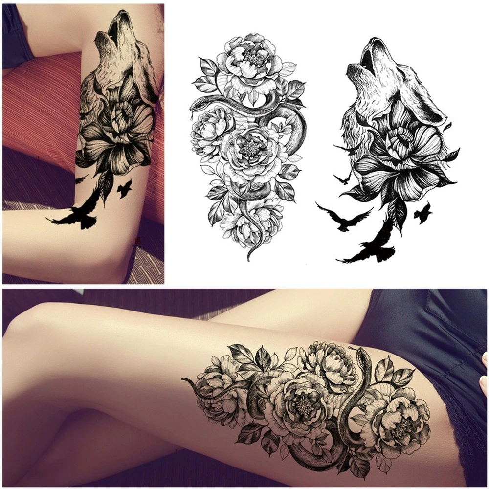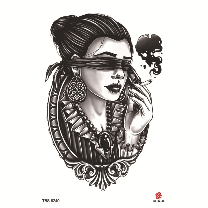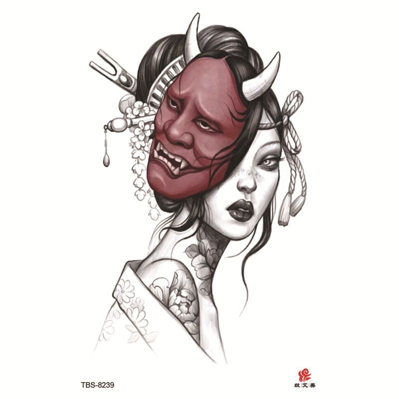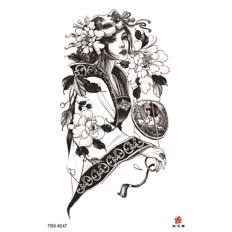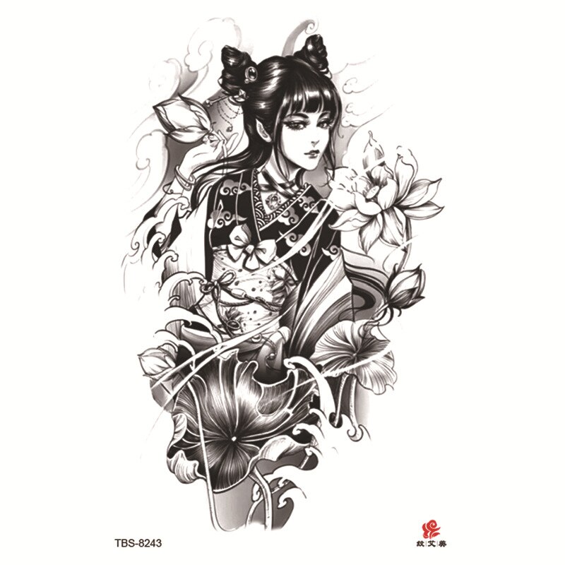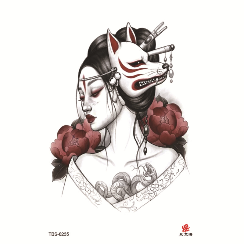 Sdrawing Temporary Tattoo Sticker Dark Snake Tattoos Flower Tatoos Body Art Geisha Water Transfer Clavicle Arm Fake Tatto