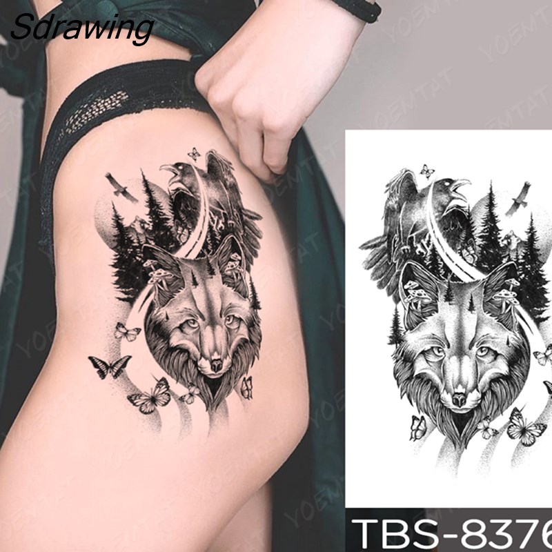 Sdrawing Temporary Tattoo Sticker forest eagle wolf butterfly Flash Tattoos Gothic Y2K Body Art Arm Fake Tatoo Men Women