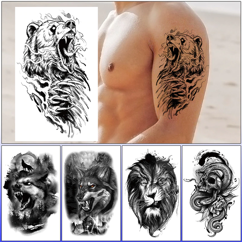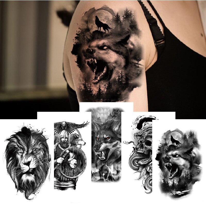 Sdrawing Temporary Tattoo Sticker Forest Lion Tiger Flash Tattoos Women Skeleton Skull Bodi Art Arm Fake Tatoo Men Body Woman