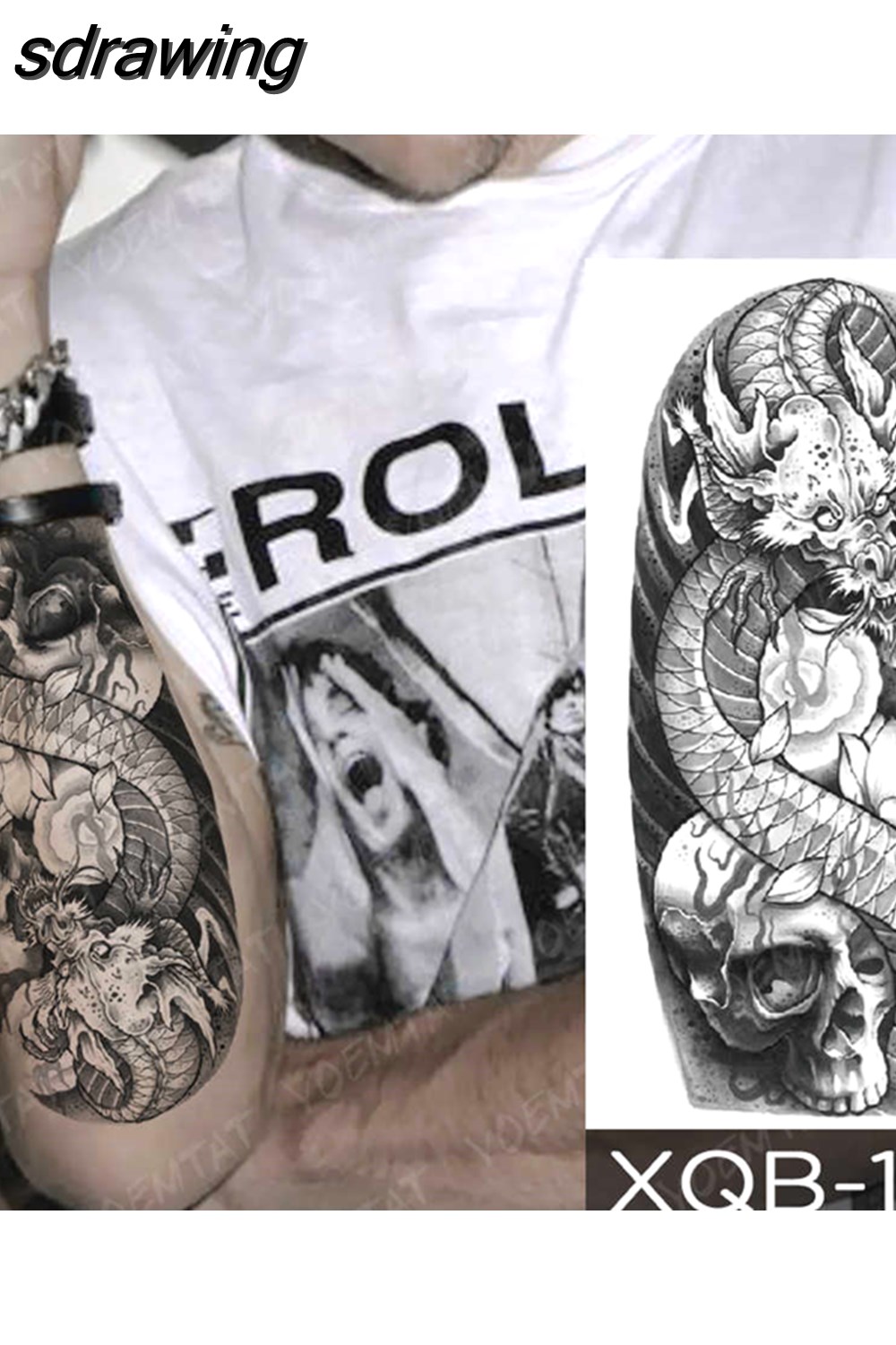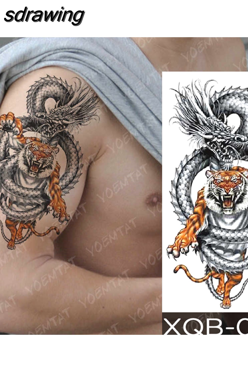 sdrawing Temporary Tattoo Sticker Geometric Tiger Wolf Death Flash Tattoos Leopard Totem Body Art Arm Fake Tatoo Women Men