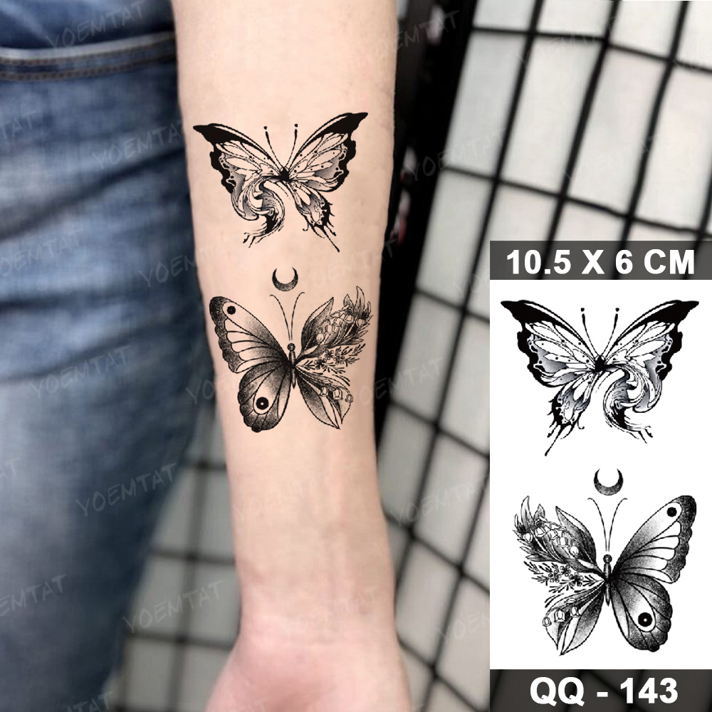 Sdrawing Temporary Tattoo Stickers Butterfly Flower Realistic Sexy Flash Tatoo Women Men Arm Waist Line Body Art Fake Tatto Cool