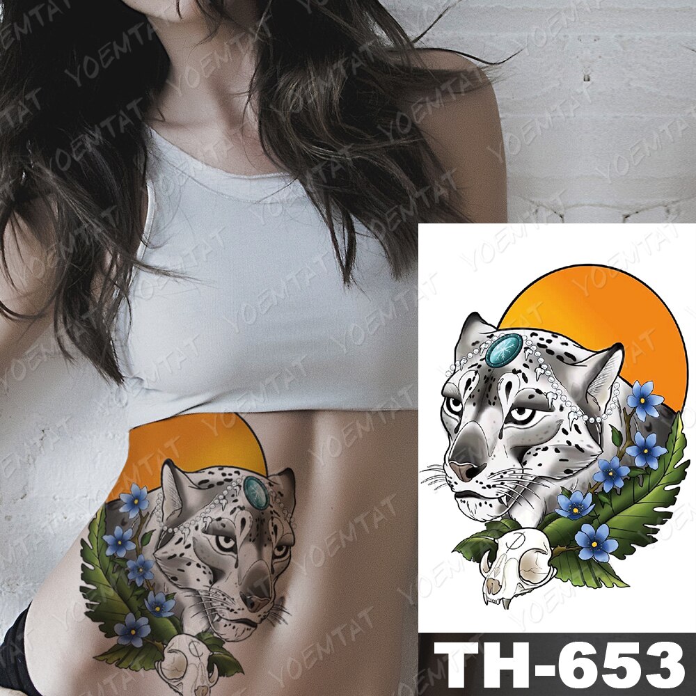 Sdrawing Temporary Tattoo Stickers Wolf Tiger Leopard Lion Moon Feather Star Flash Tattoos Female Back Body Art Fake Tatoo
