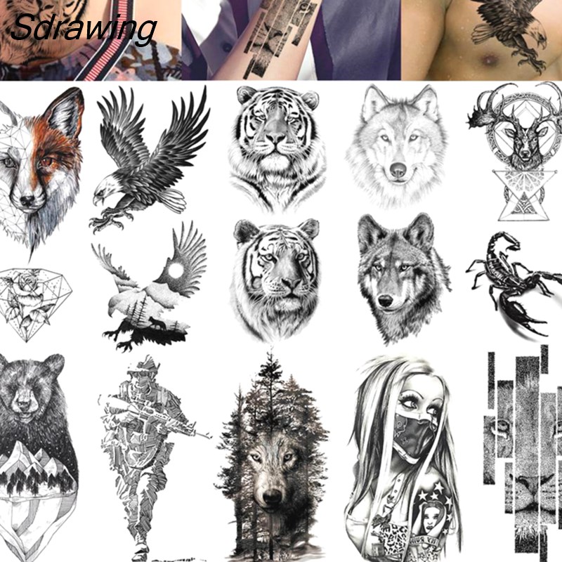Sdrawing Temporary Tattoos Animals Body Armband Soldier Fake Tattoo Stickers Scorpion Wolf Deer Elk Eagle Bear Forearm Tatoo Decals