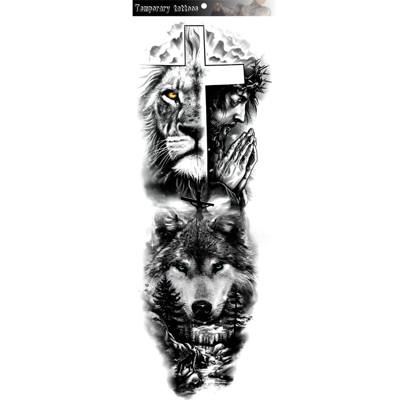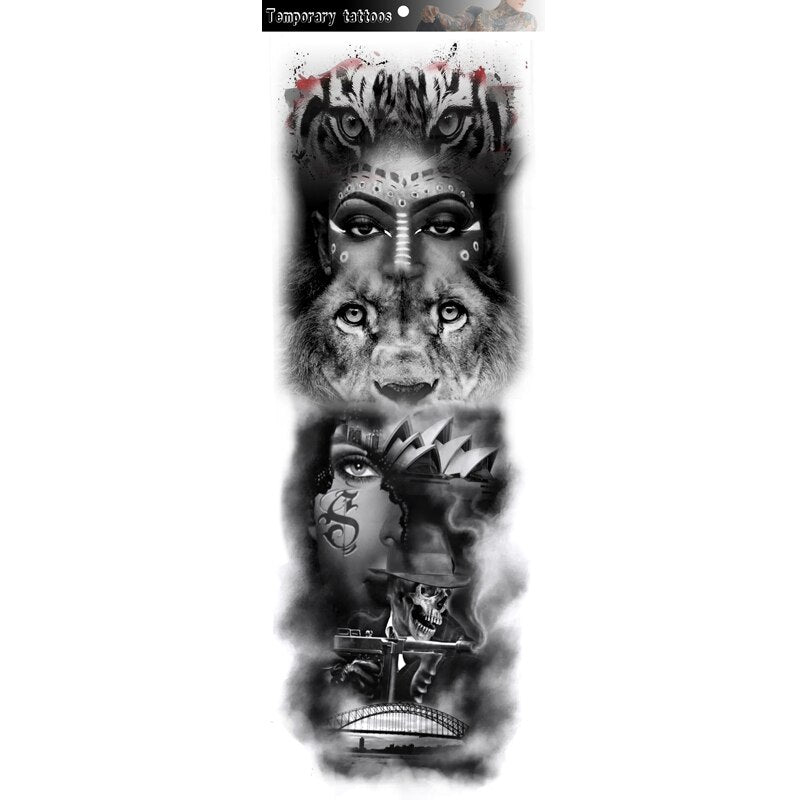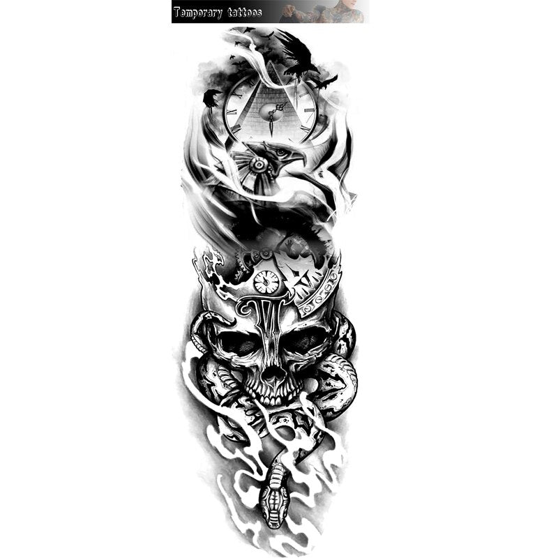 Sdrawing Temporary Tattoos Skeleton Hand For Men Women Horrer Adult Wolf Tiger Full Skull Totem Tatto Body Arm Legs Tattoos 1028-1