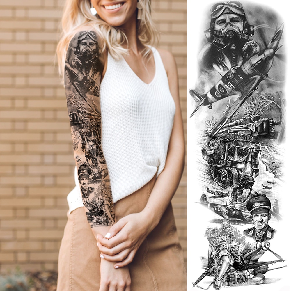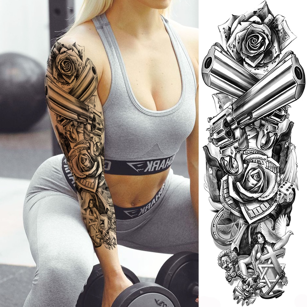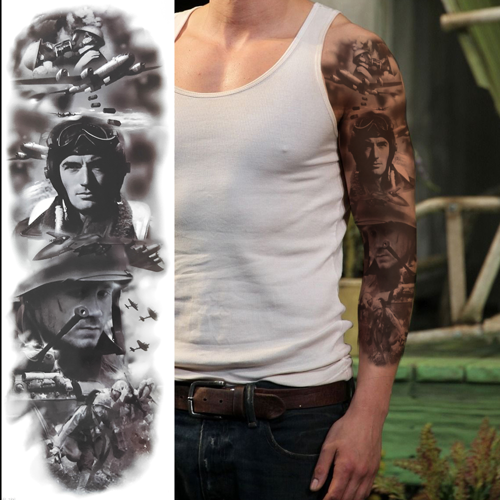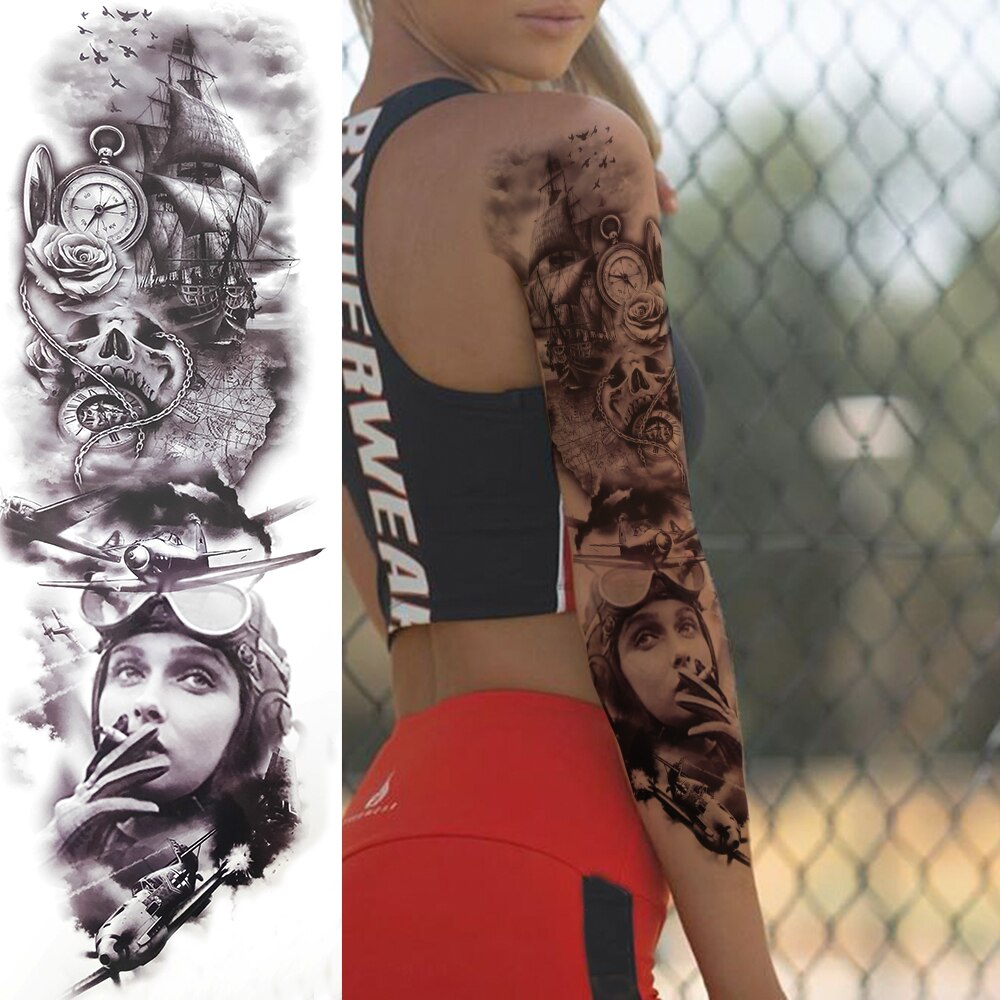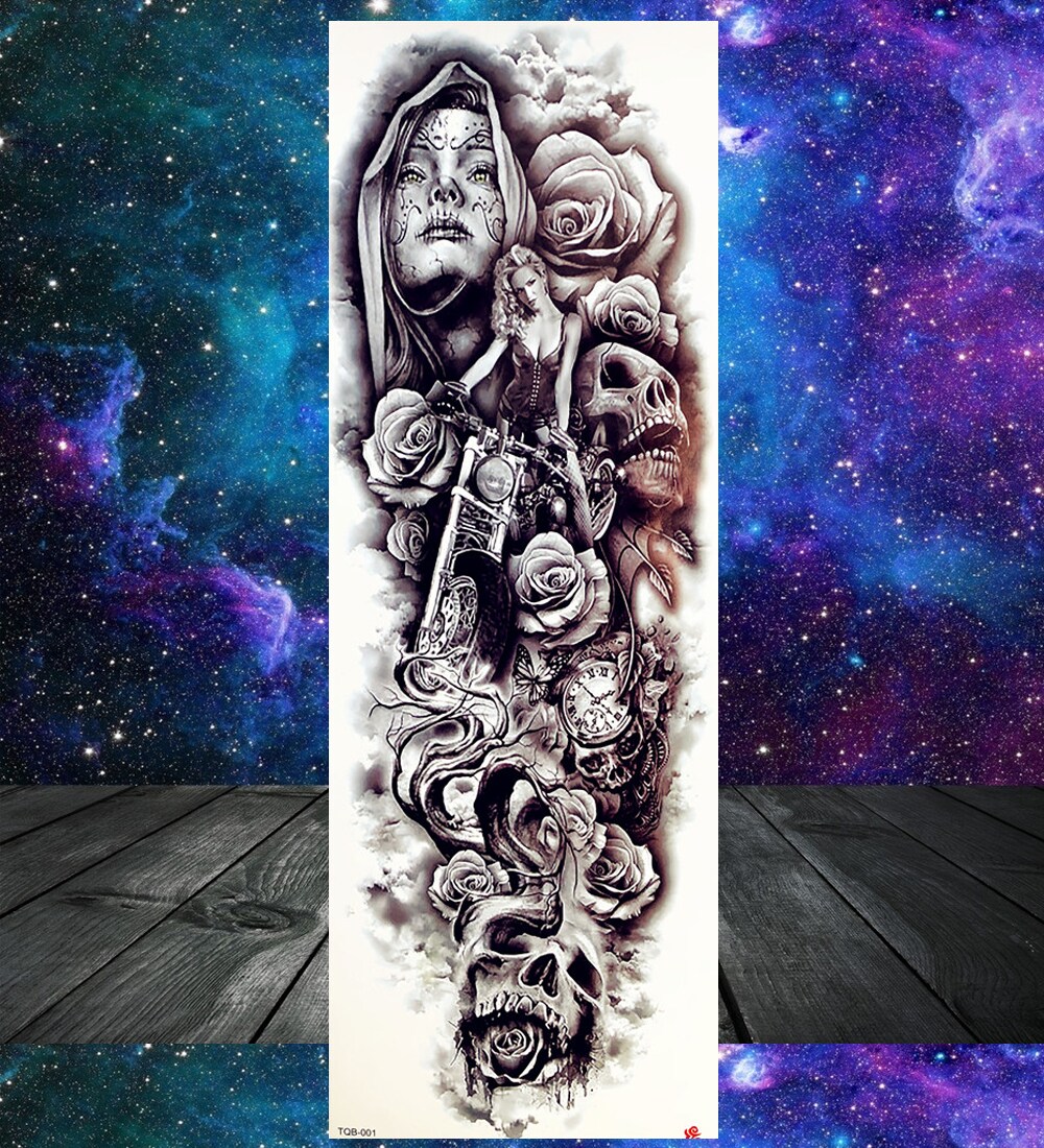 Sdrawing Temporary Tattoos Sleeve For Men Women Skeleton King Warrior Full Arm Tattoos Sticker War Black Fake Tatoos Long Sleeve