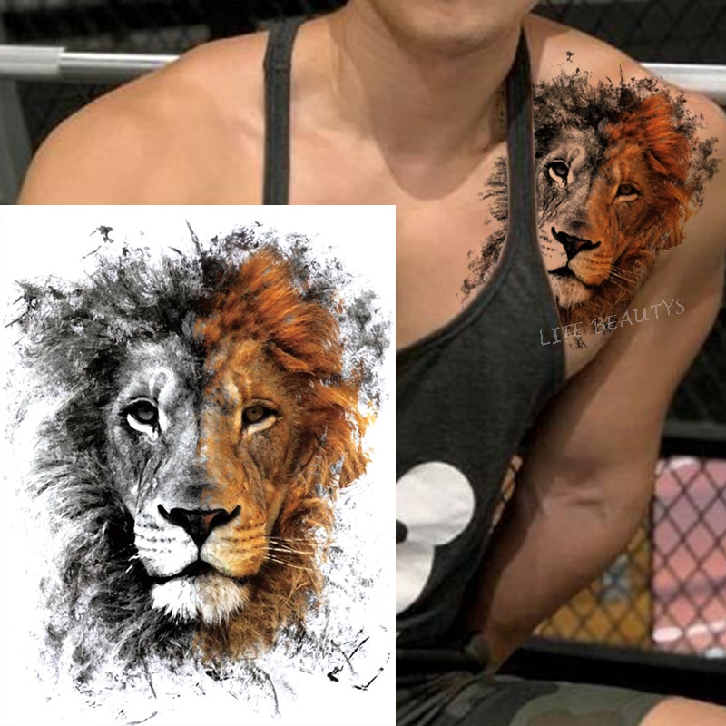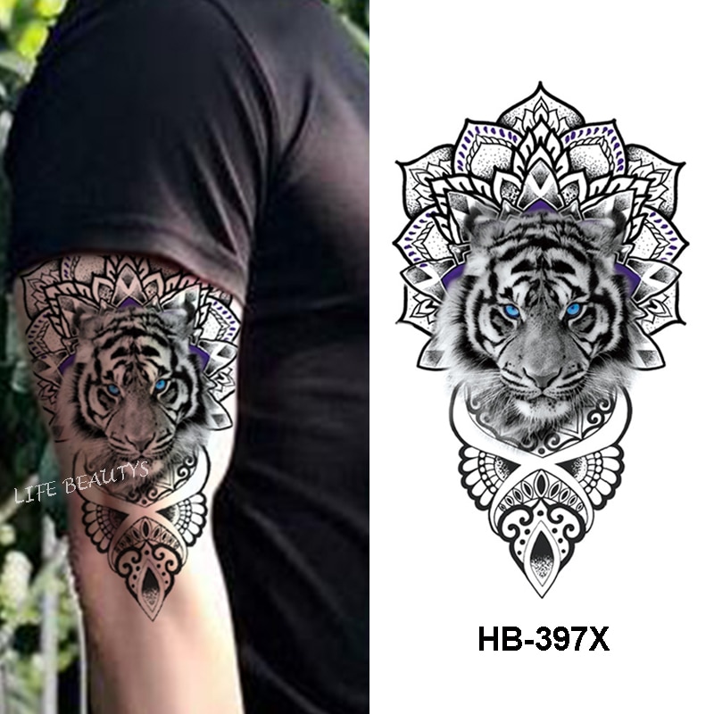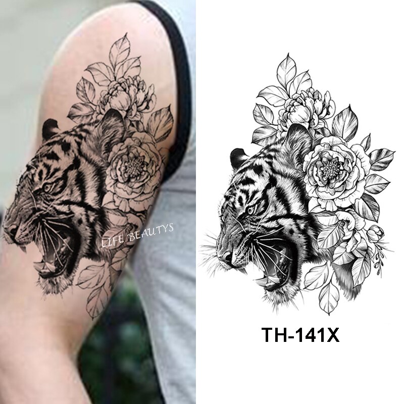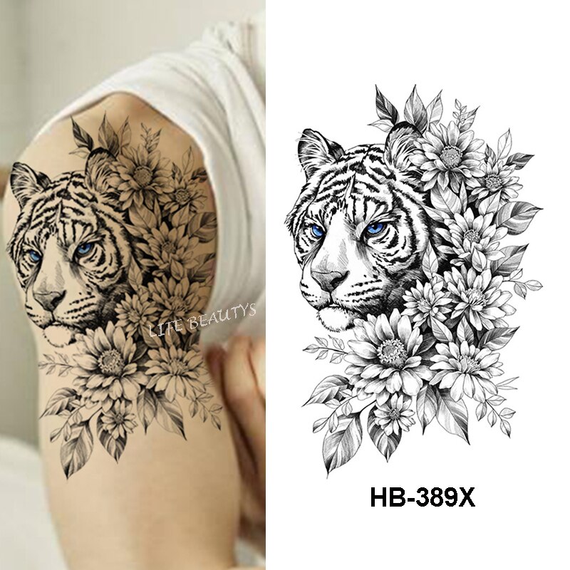 Sdrawing Tiger Cool Temporary Tattoo Sticker Fashion Wolf Waterproof Animal Body Art Arm Fake Removable Tatoo Men Women Personality