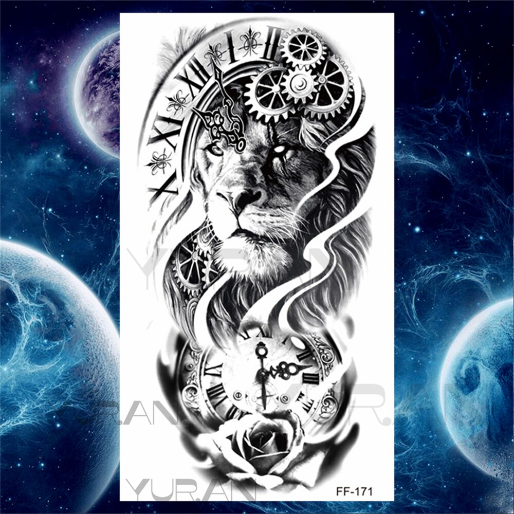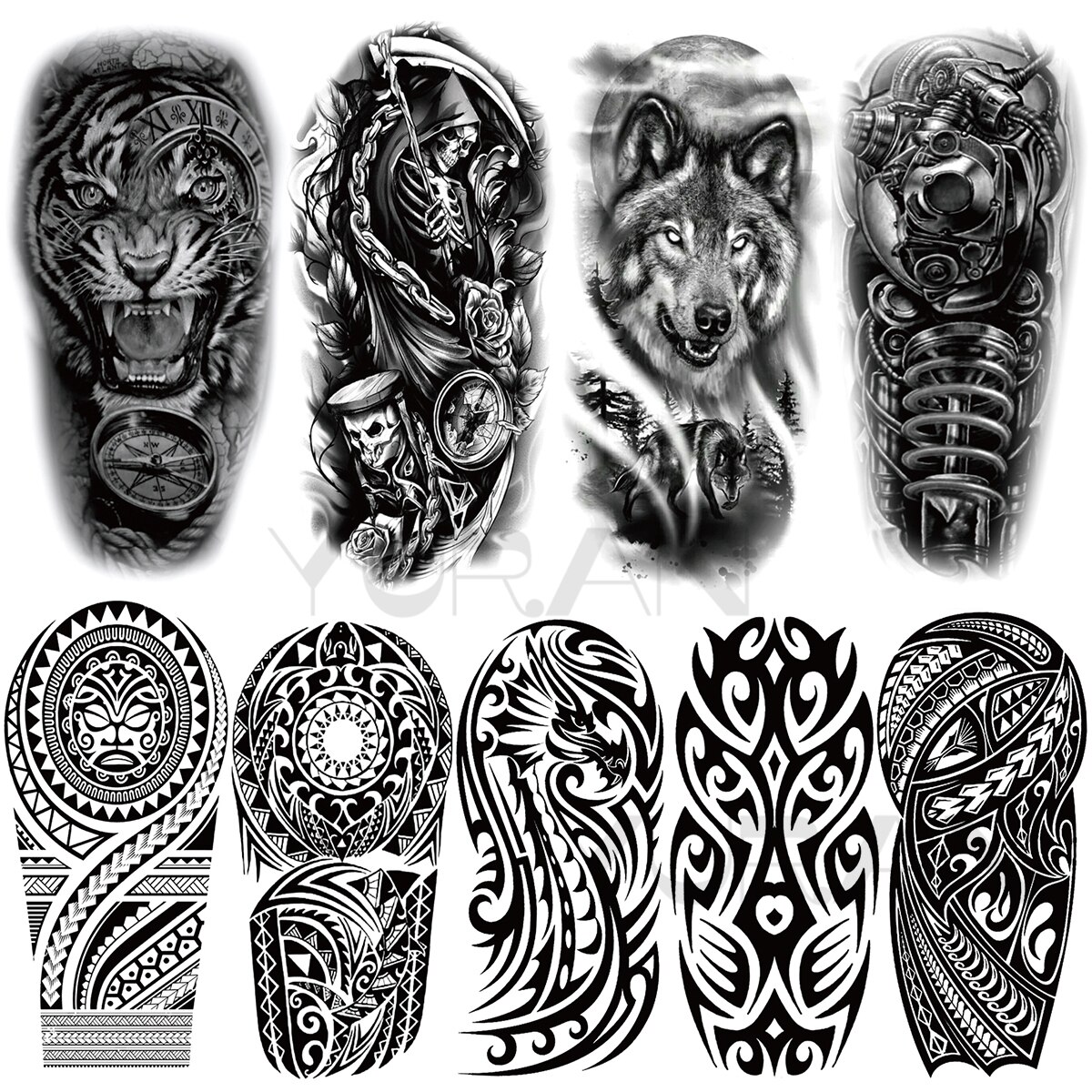 Sdrawing Tiger Temporary Tattoos For Women Men Realistic Wolf Scary Thorns Maori Compass Fake Tattoo Stickers Arm Body Tatoos DIY