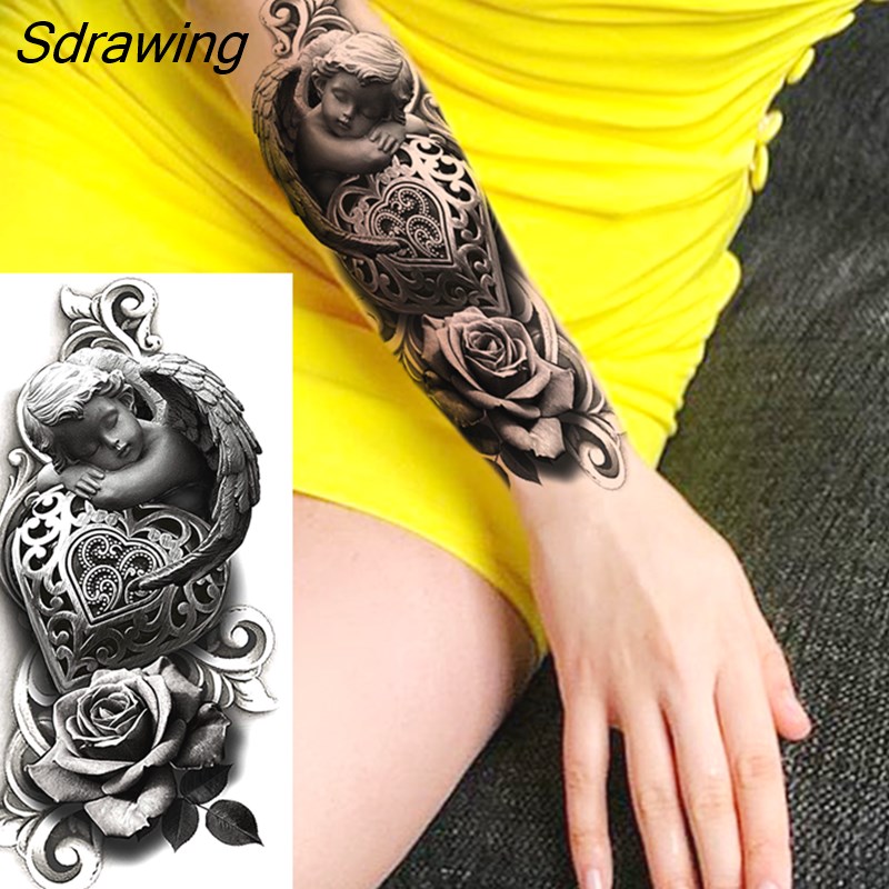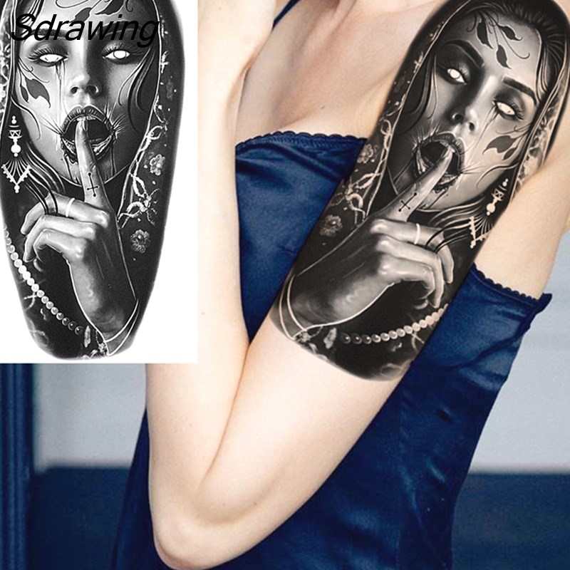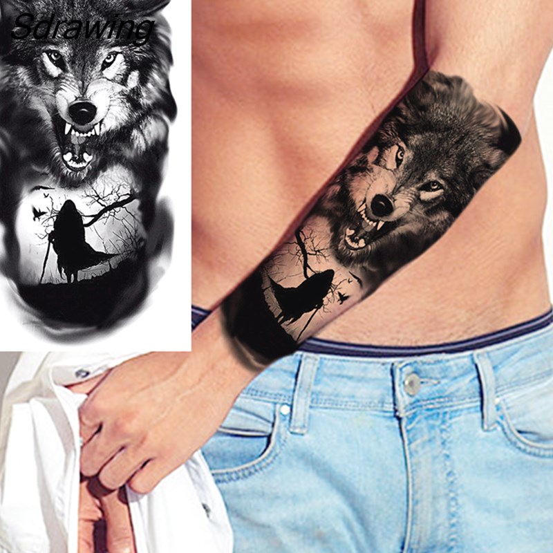 Sdrawing Warrior Punk Skeleton Gangster Rose Flower Temporary Tattoos For Women Men Lion Tiger Skull Rose Fake Tattoo Sexy Arm
