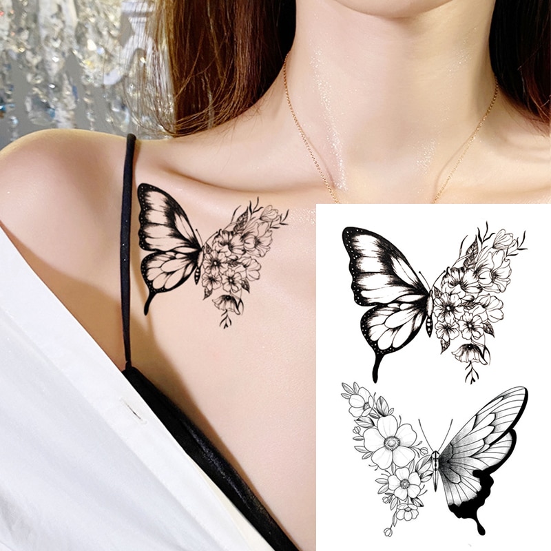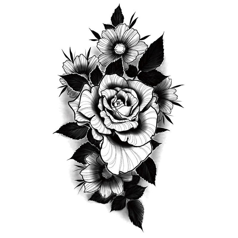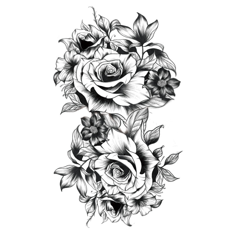 Sdrawing Waterproof Temporary Flower Tattoos Women Beauty Rose Butterfly Flash Feather 3D Fake Tattoo Arm Waist Hand Sticker Men