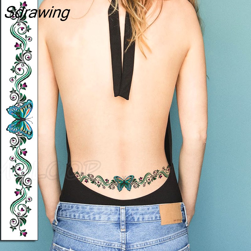 Sdrawing Waterproof Temporary Tattoo Sticker Big Morning Glory Flower Plant Art Fake Tatoo Water Transfer Tatto for Women Girl