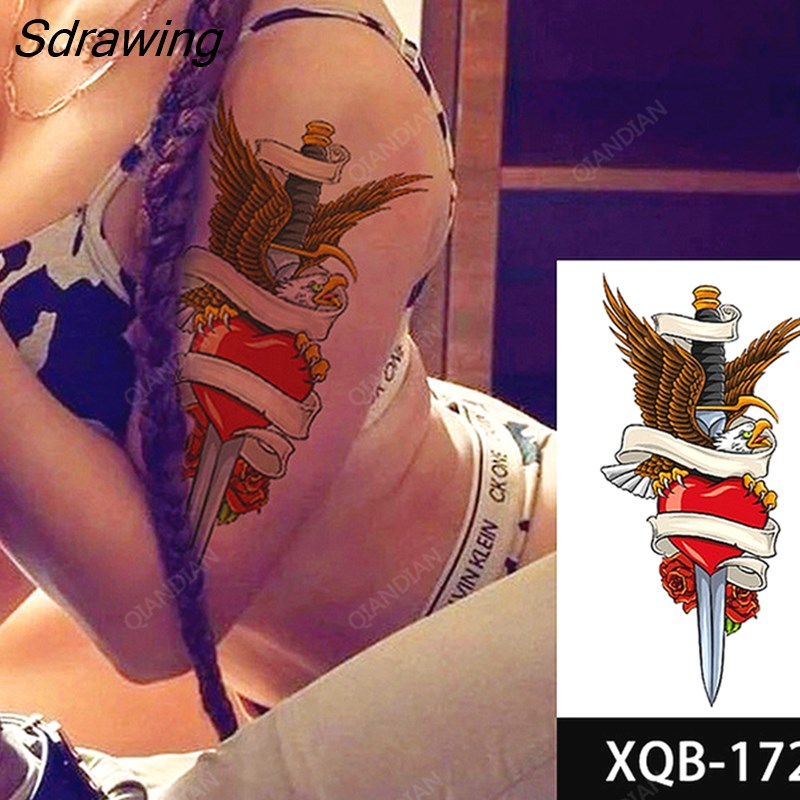 Sdrawing Wolf Flower Rose Bouquet Camellia Women Lady Waterproof Temporary Tattoos Fake Stickers Arm Forearm Cool Art Sexy Black