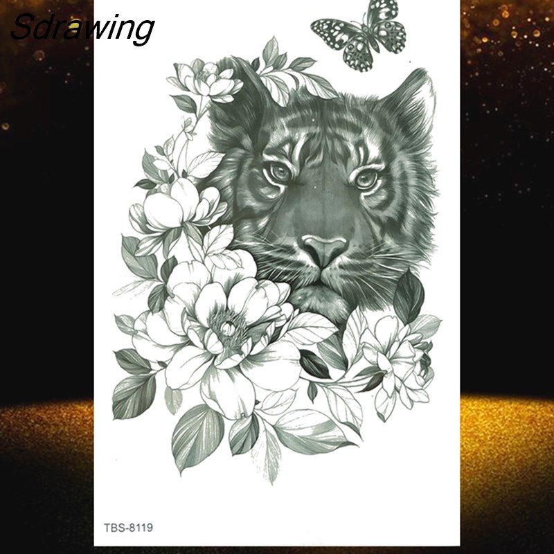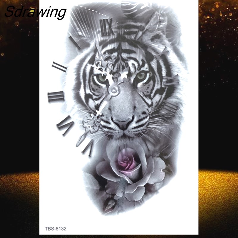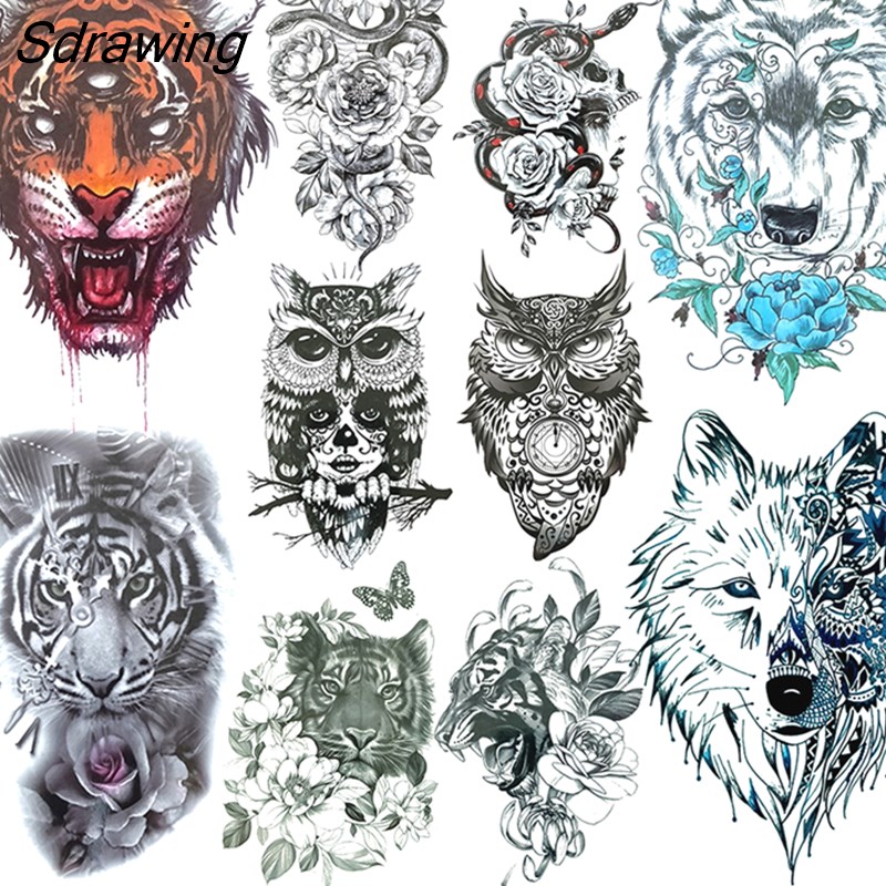 Sdrawing Wolf Tiger Owl Tatoo Sticker 3D Black Animal Tattoo For Men Women Kids Hot Sale Monster Flower Disposable Temporary Tattoo