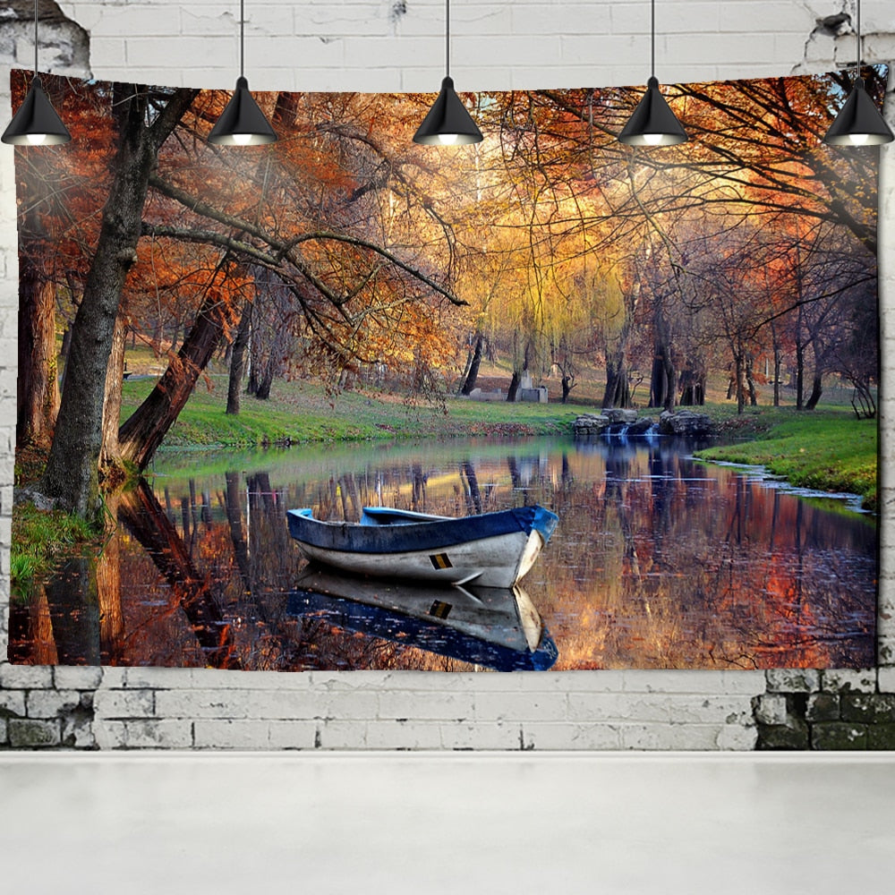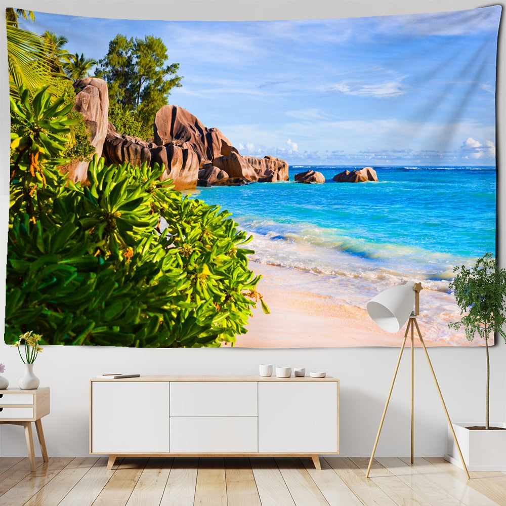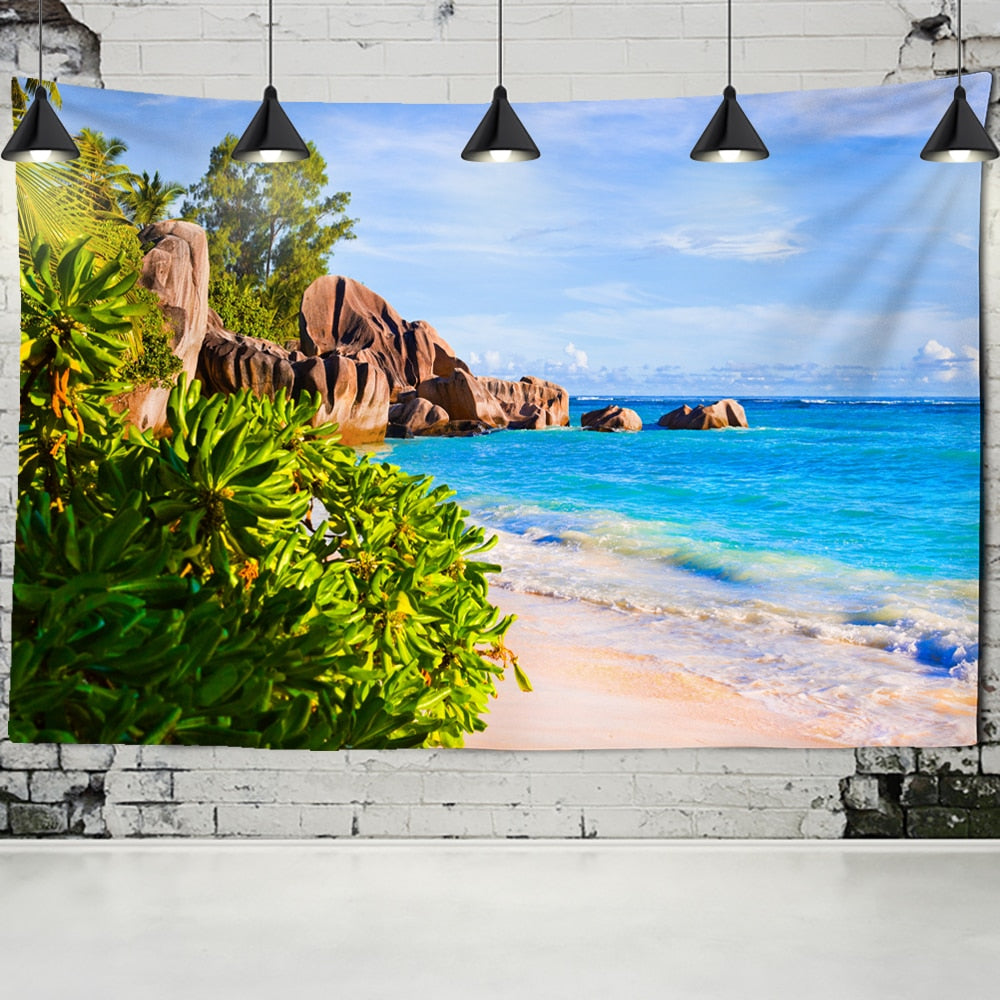 Seaside Scenery Tapestry Cruise Ship Wall Hanging Forest Bohemian Art Bedroom Home Decor Background Cloth