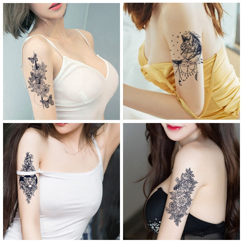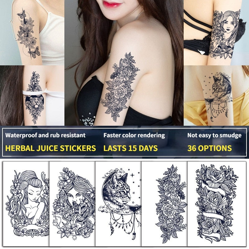 Semi-permanent waterproof sweat plant lasting big picture tattoo flower arm non-reflective herbal juice tattoo sticker