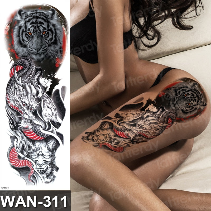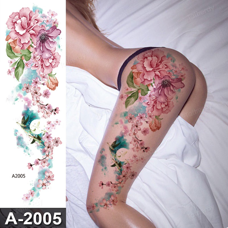 sexy fake tattoo for woman waterproof temporary tattoos large leg thigh body tattoo stickers peony lotus flowers fish dragon