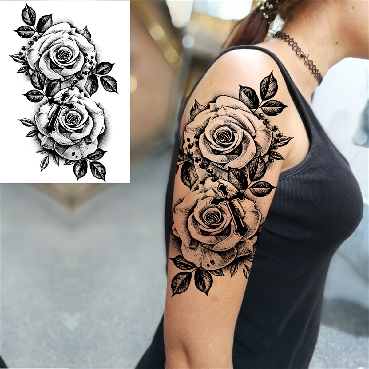 Sexy Flower Moon Temporary Tattoos For Women Girls Black Henna Tattoos Sticker Tribal Dreamcatcher Peony Large Tatoos Back Body