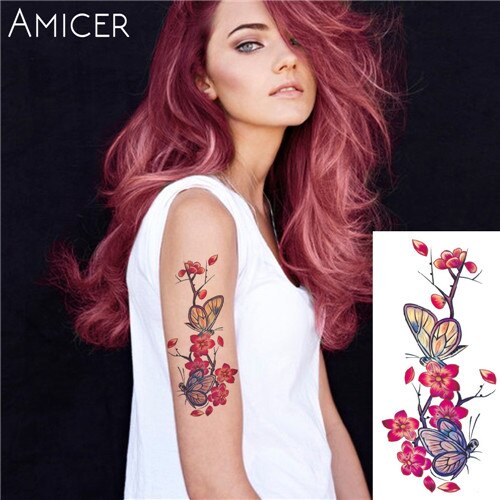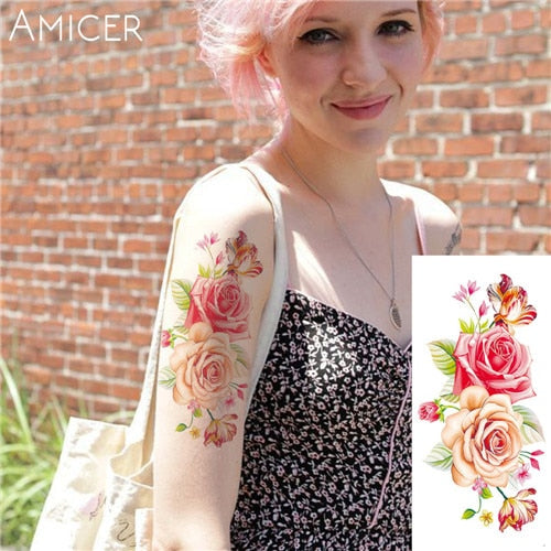 sexy romantic dark rose flowers Tattoo sleeve flash henna tattoos fake Waterproof temporary tattoos stickers translated tattoos
