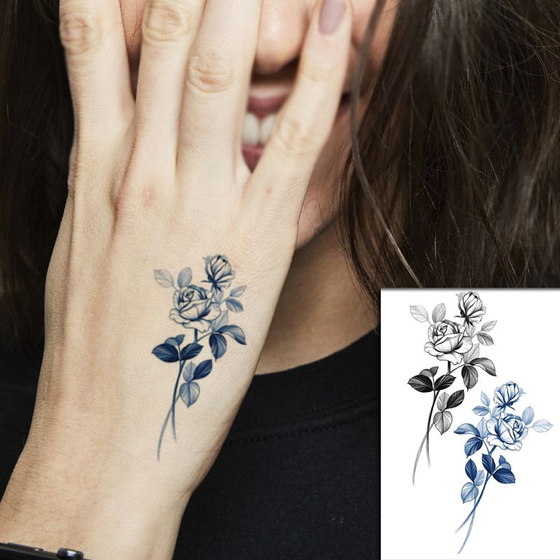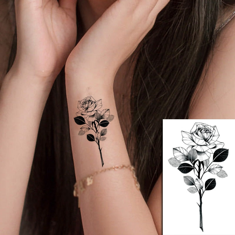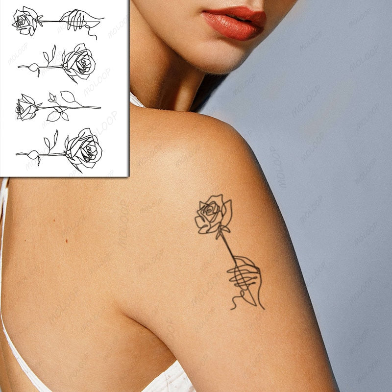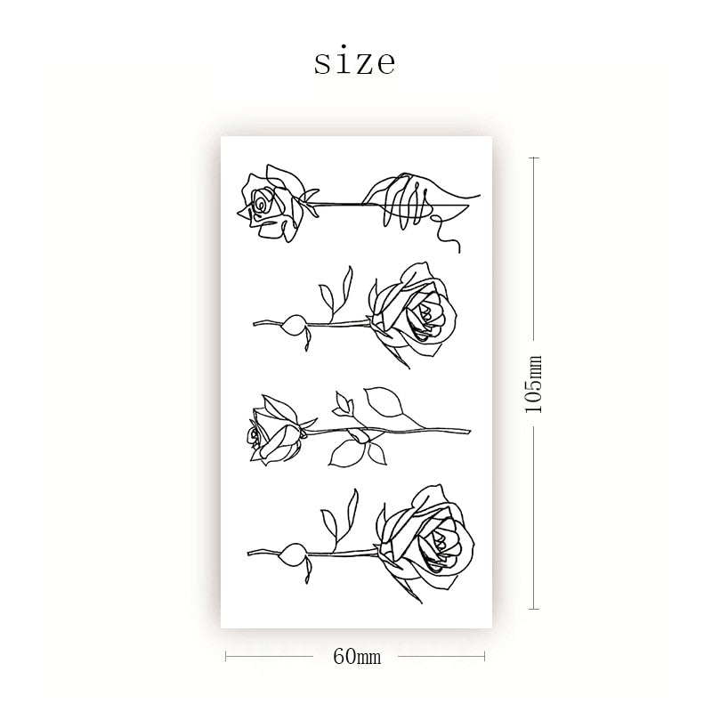 Sketch Rose Flowers Waterproof Temporary Tattoo Sticker Hand Lines Design Fake Tattoos Flash Tatoos Arm Chest Body Art for Women