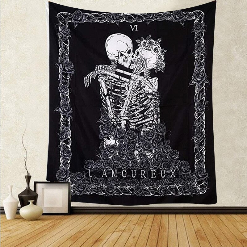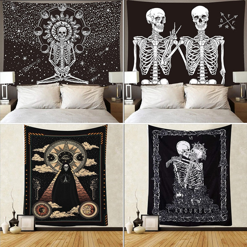 Skull King Moon Tapestry Mandala Carpet Hippie Divination Witchcraft Wall Hanging Blanket