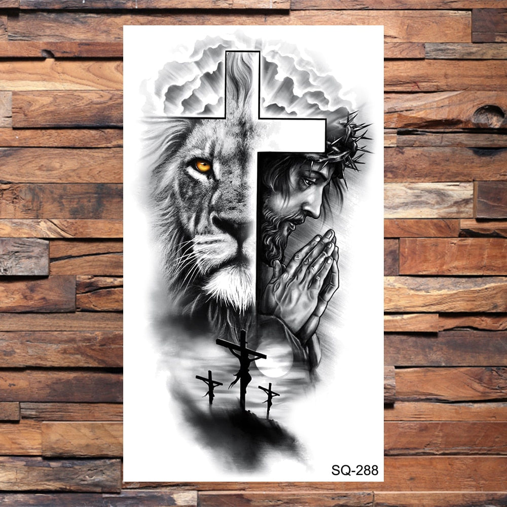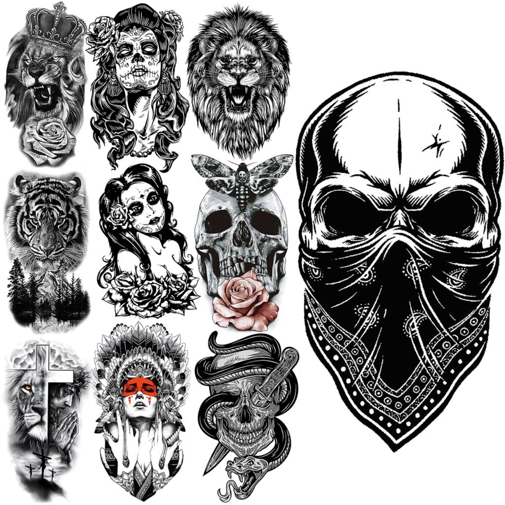 Skull Temporary Tattoos For Adults Men Realistic Tiger Lion Forest Praying Tatoos Vampire Snake Fake Tattoo Sticker Body Leg