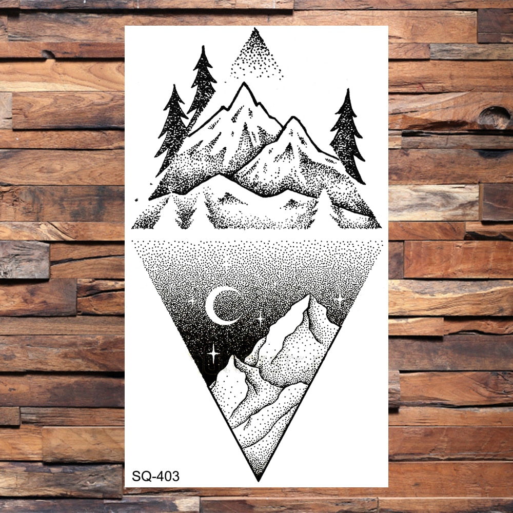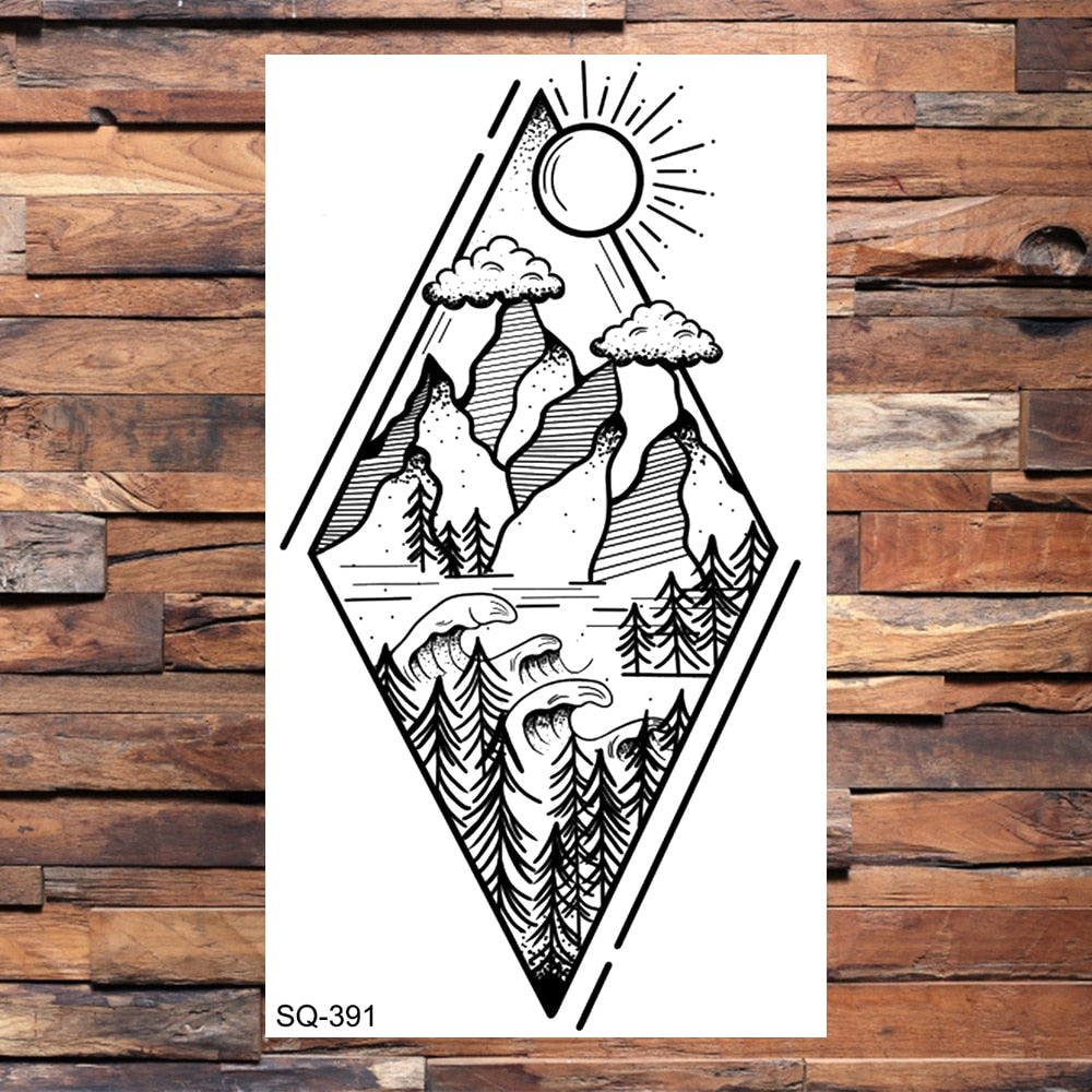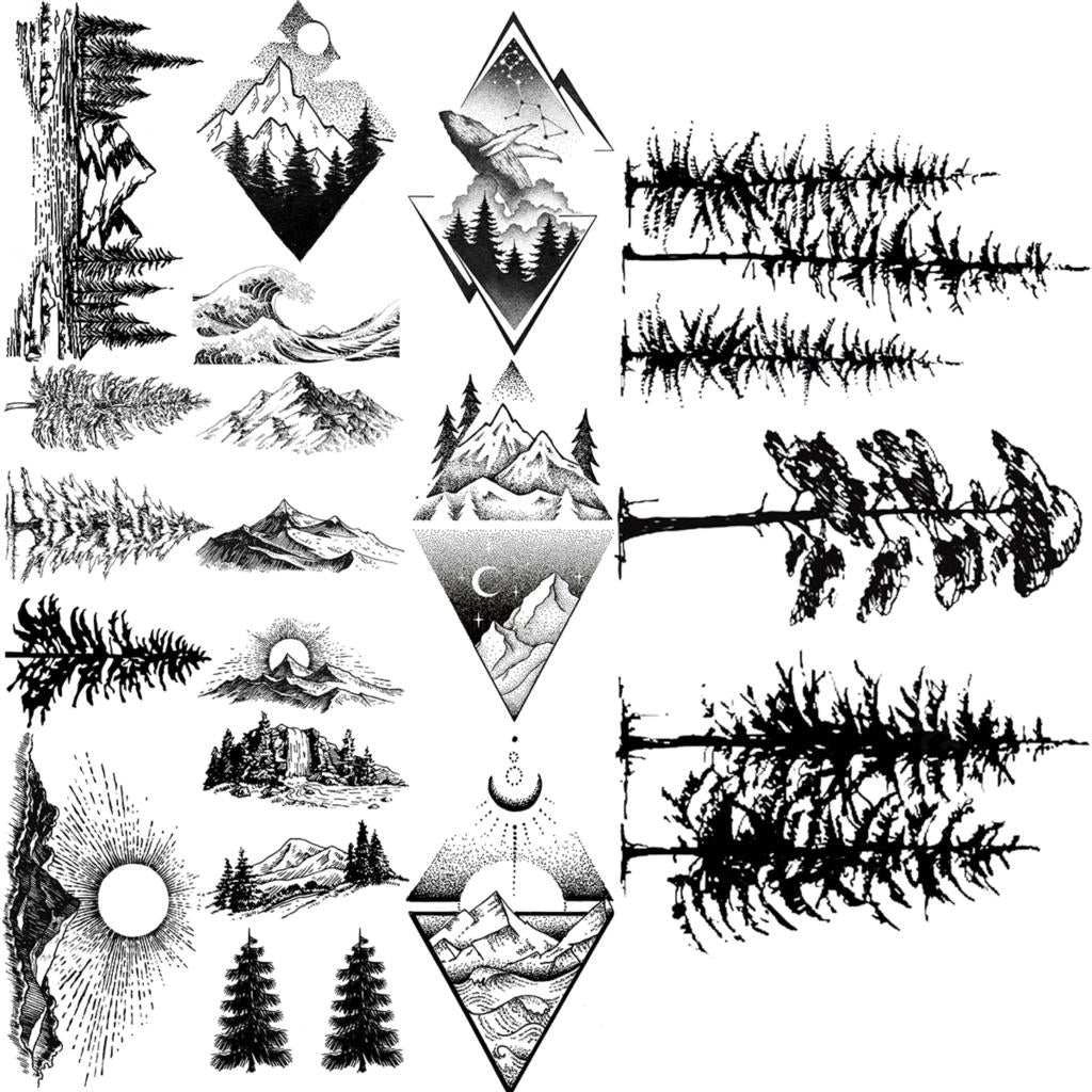 Small Forest Pine Tree Temporary Tattoos For Women Men Realistic Whale Mountain Sea Wave Fake Tattoo Sticker Arm Body Tatoos
