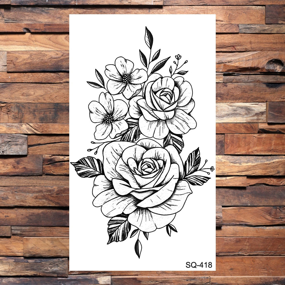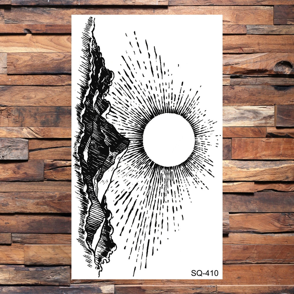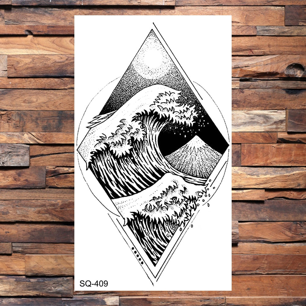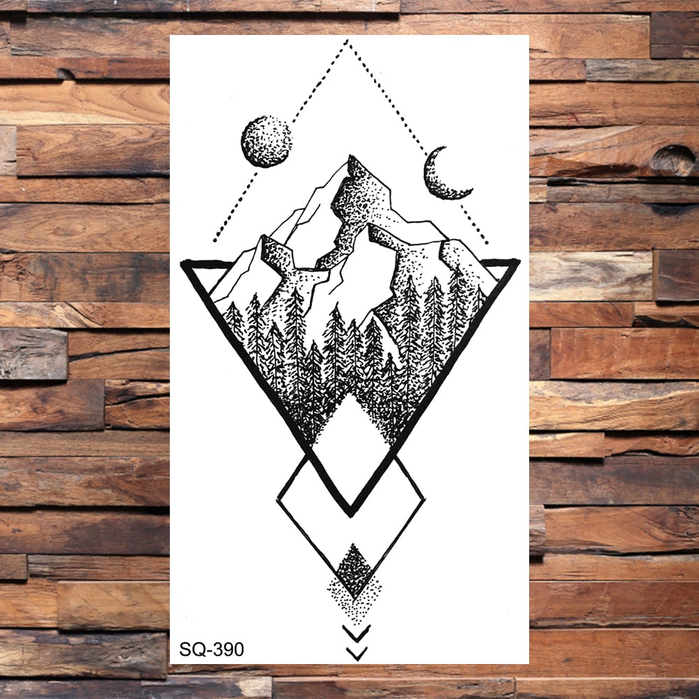 Small Forest Pine Tree Temporary Tattoos For Women Men Realistic Whale Mountain Sea Wave Fake Tattoo Sticker Arm Body Tatoos