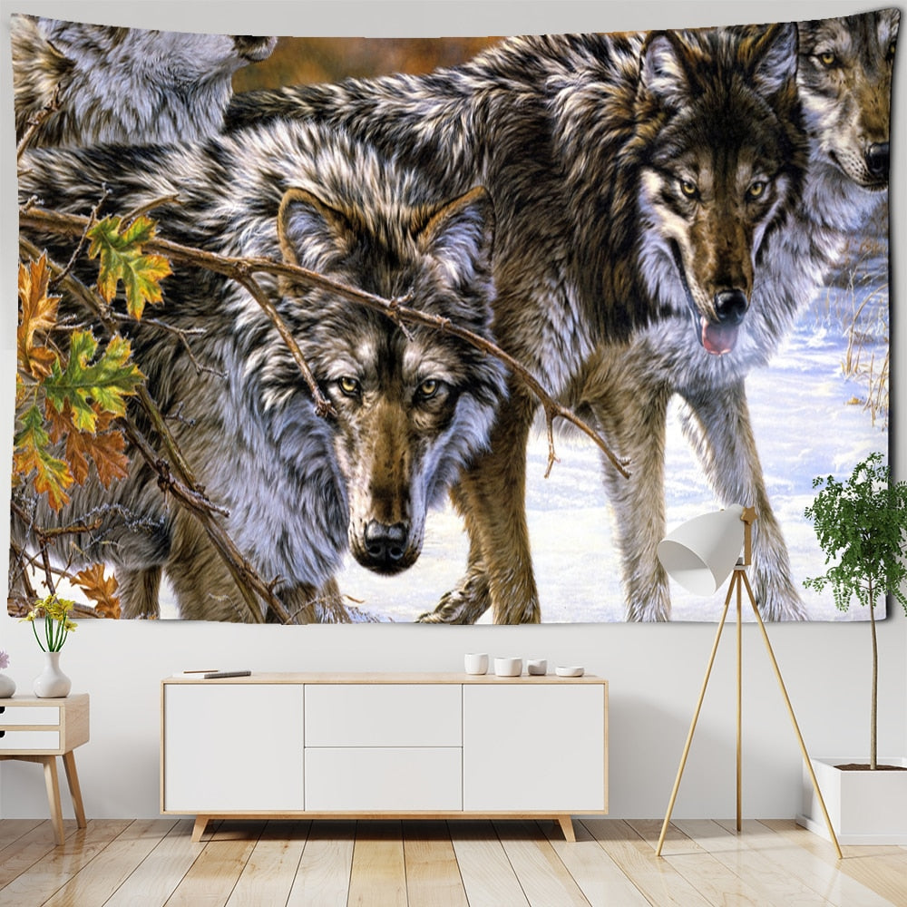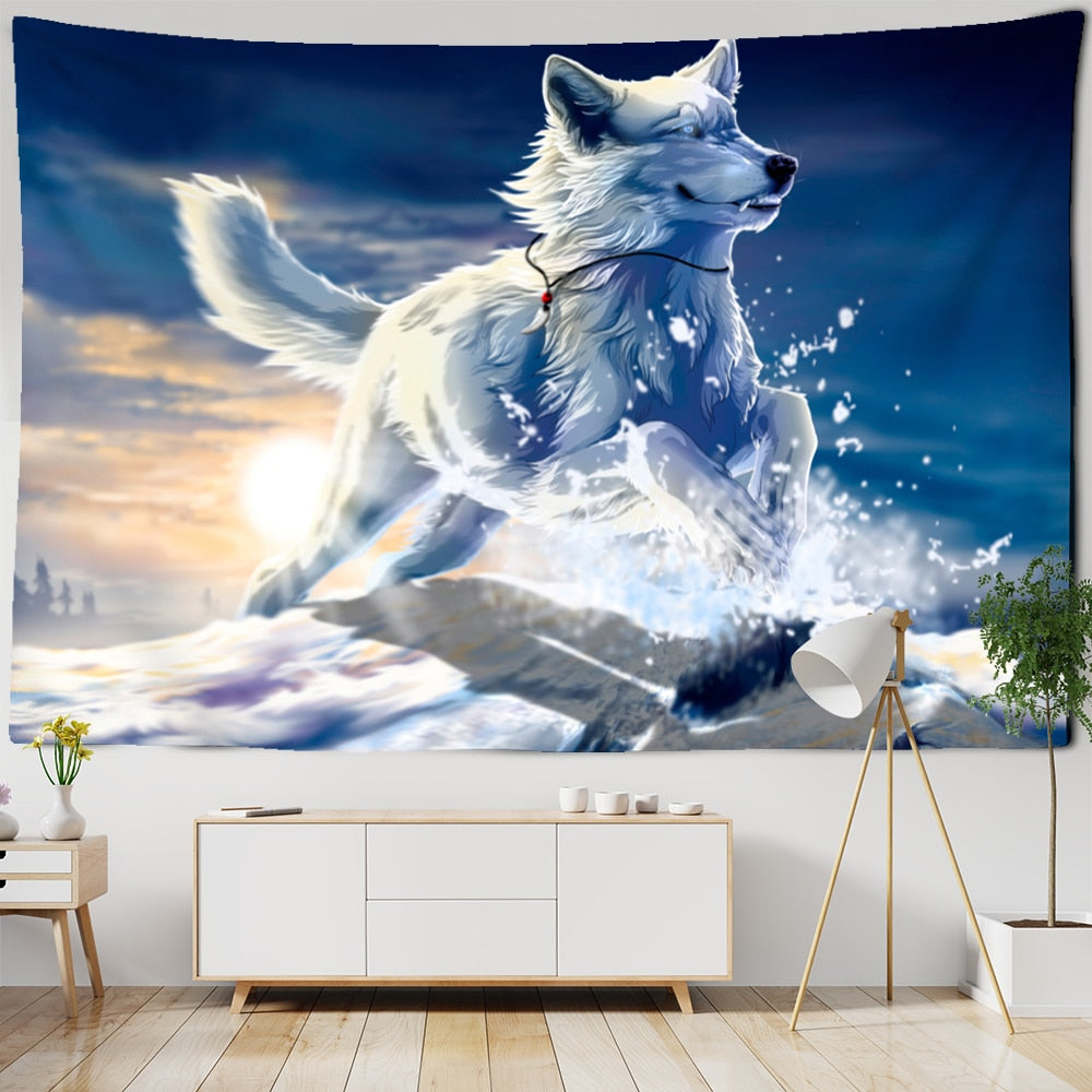 Snow Wolf Tapestry Wall Hanging Psychedelic Witchcraft Bohemian Mysterious Art Landscape Room Home Decor