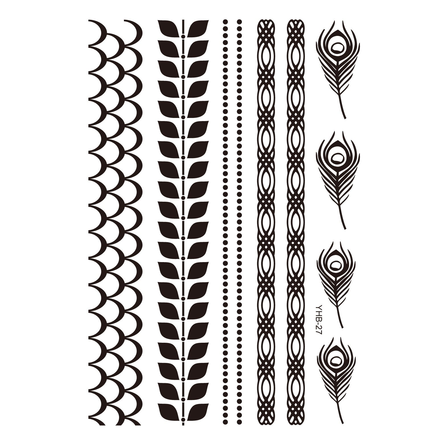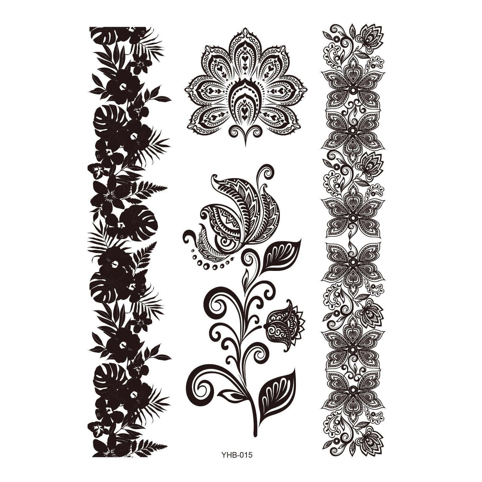 Stockings Tattoo Legs Black Henna Lace Bracelet Temporary Tatoo Sticker Mehndi Stickers for Hand Finger Leg Thigh Body Art Decal