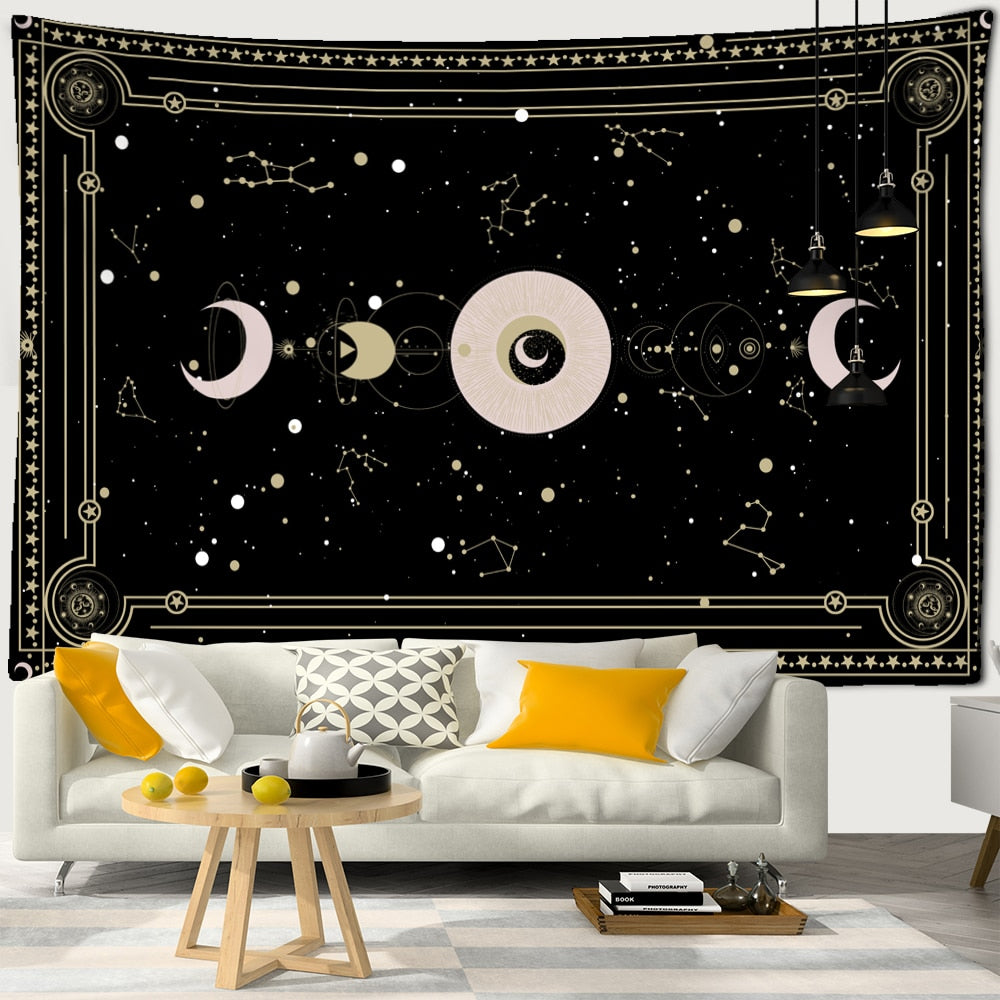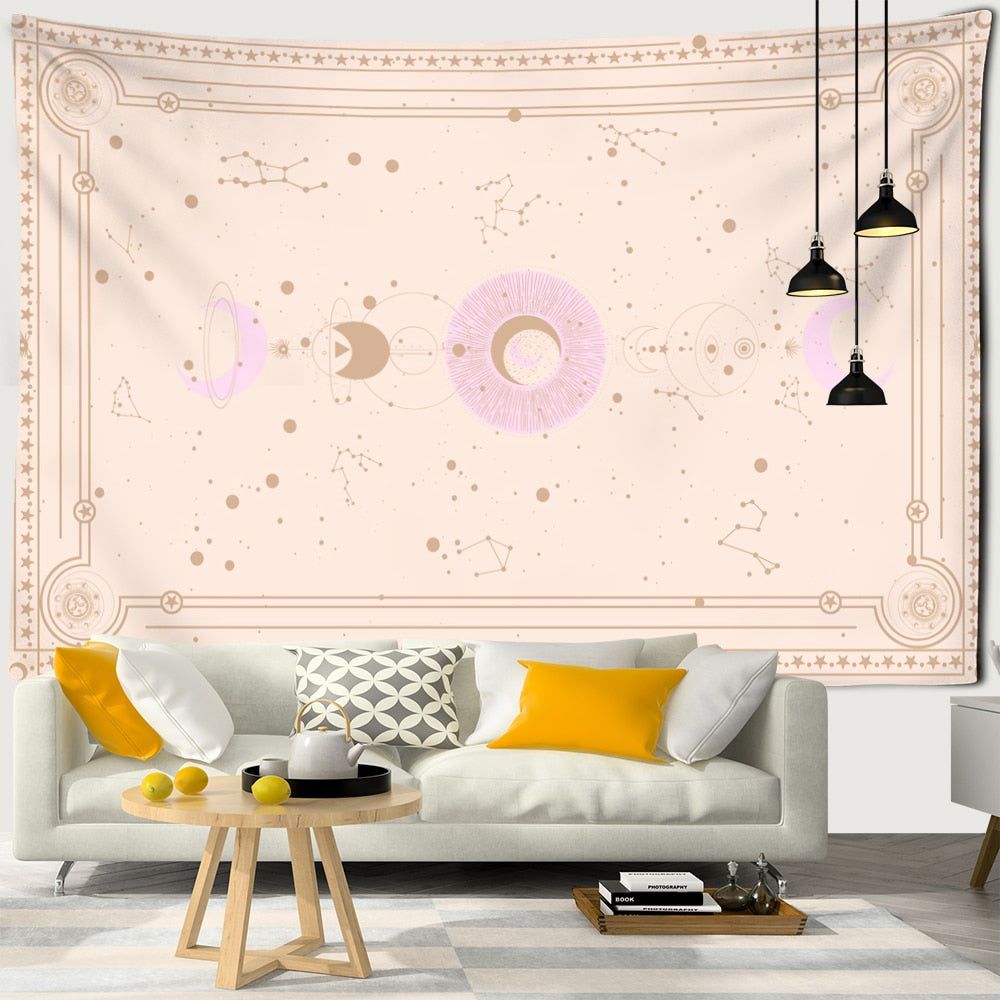 Sun Moon Planet Tarot Tapestry Wall Mount Tapiz Witchcraft Psychedelic Dormitory Bedroom Artist Home Decor