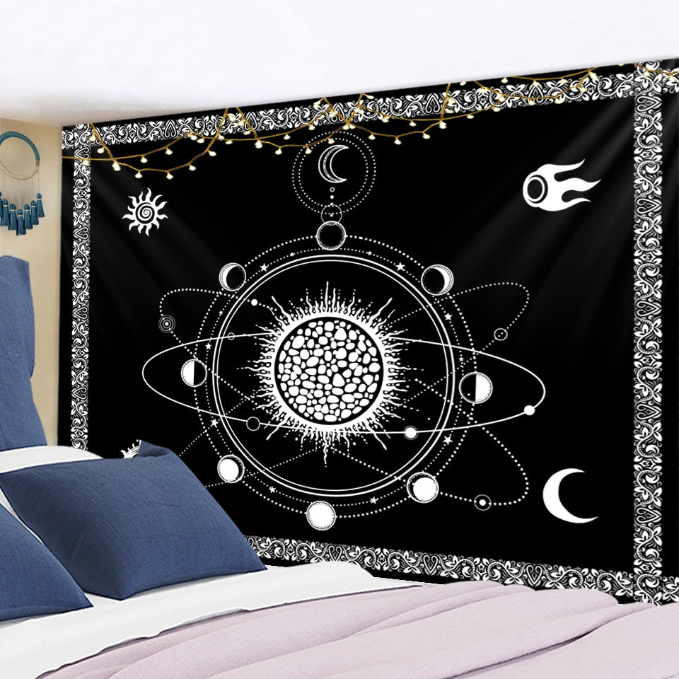 Tarot Card Mandala Tapestry White Black Sun And Moon Tapestry Wall Hanging Hippie Wall Rugs Dorm Decor Blanket