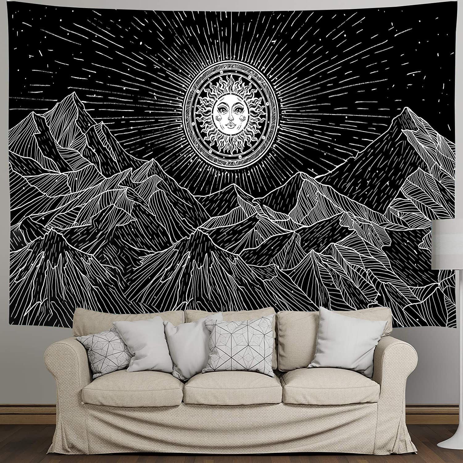 Tarot Tapestry Wall Hanging Astrology Divination Bedspread Beach Matwitchcraft Hippie Mandala White Black Sun Moon Tapestry