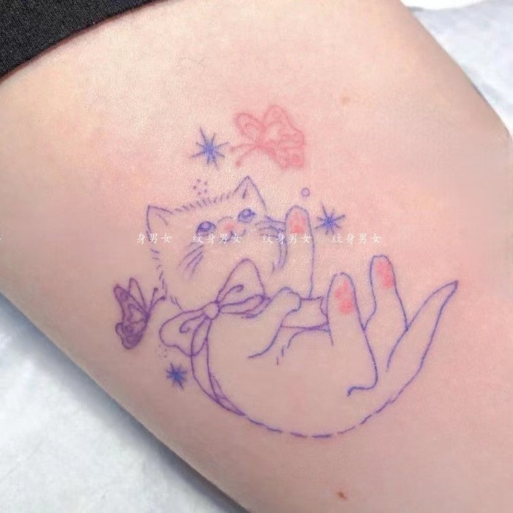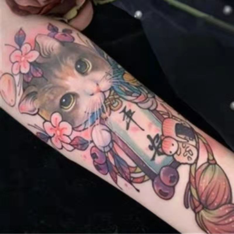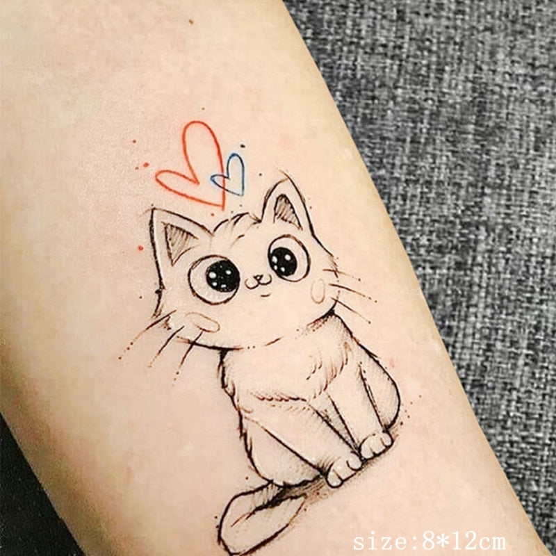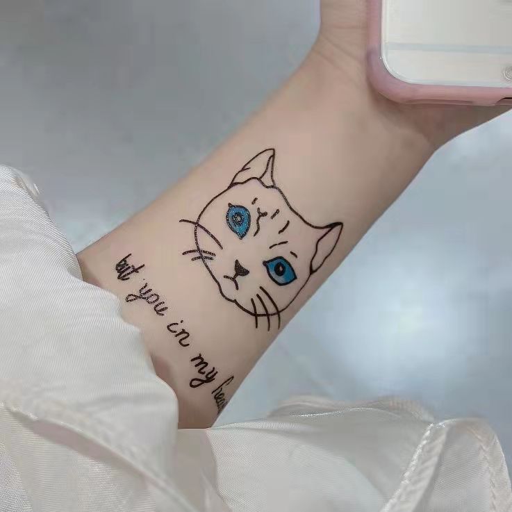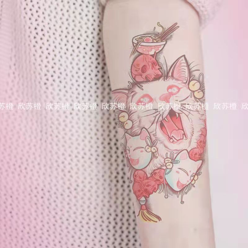 Tatoo Waterproof Cat Japanese Cute Pet Arm Semi Permanent Tattoo Cat Animal Funny Tattoo Sticker Temporary Tattoos for Men Women