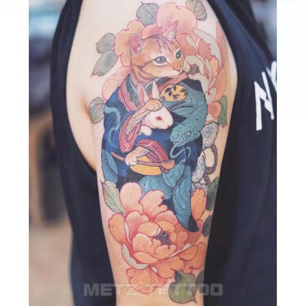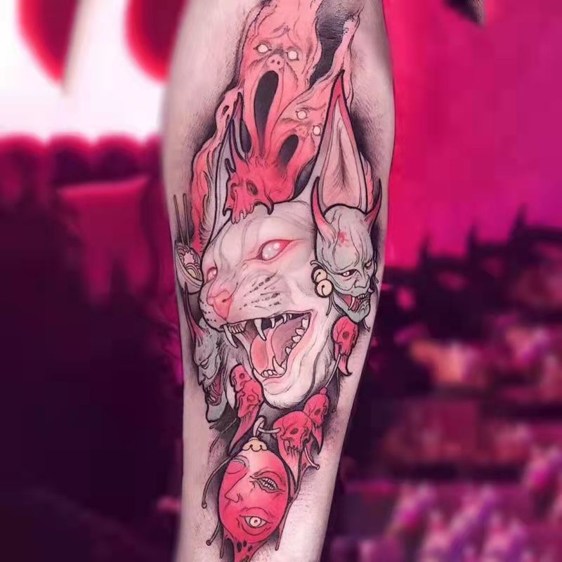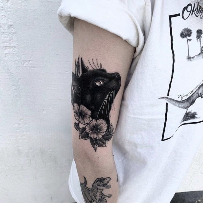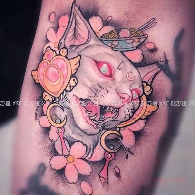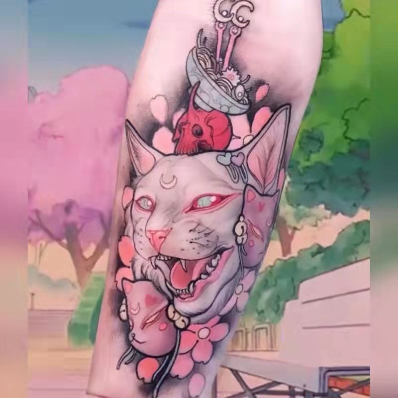 Tatoo Waterproof Cat Japanese Cute Pet Arm Semi Permanent Tattoo Cat Animal Funny Tattoo Sticker Temporary Tattoos for Men Women