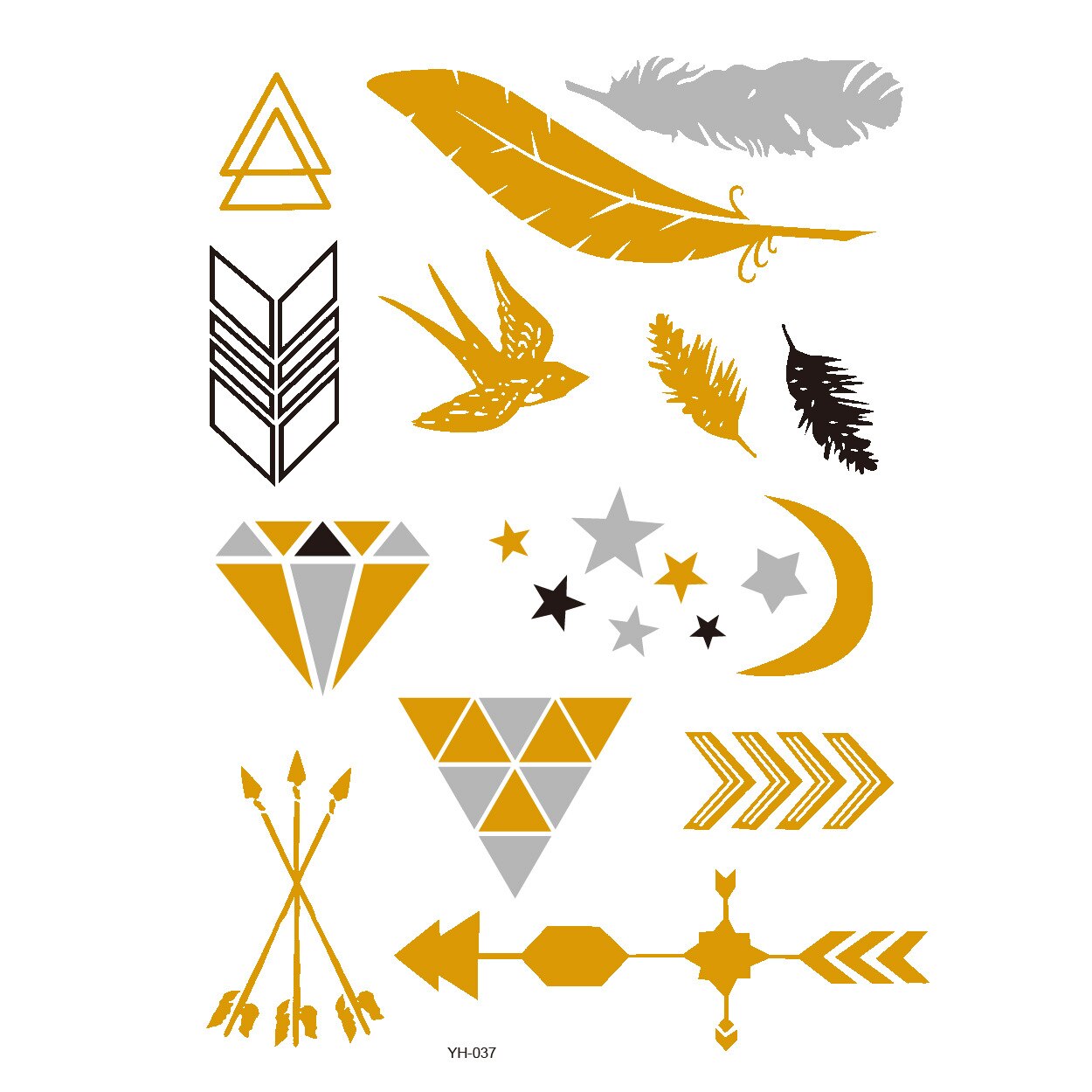 Tattoo Sexy Feather Moon Star Temporary Tattoo Female Party Body Arm Art Fake Flash Tatoos Gold Metallic Tattoo Stickers