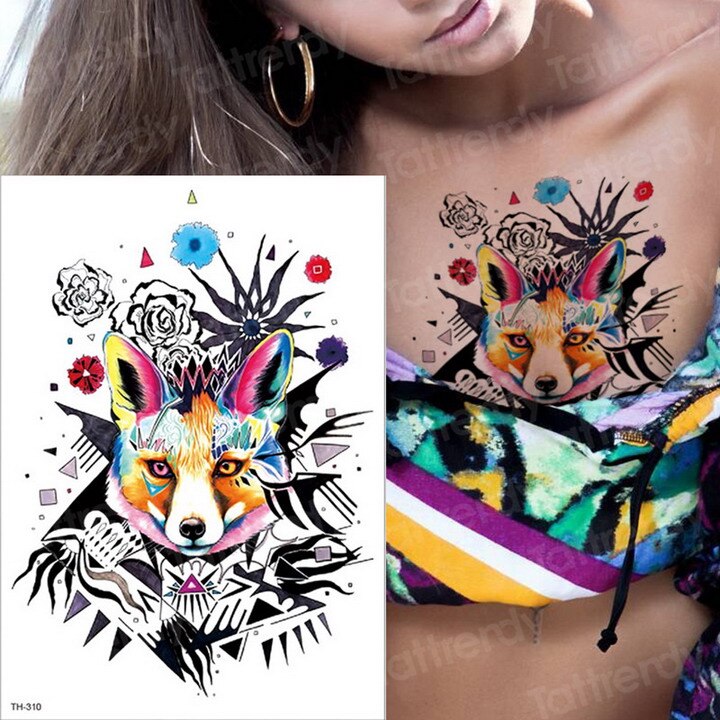 tattoo sleeve sticker watercolor animals temporary tattoos giraffe wolf tiger butterfly tatoo water color tattoo for girls body