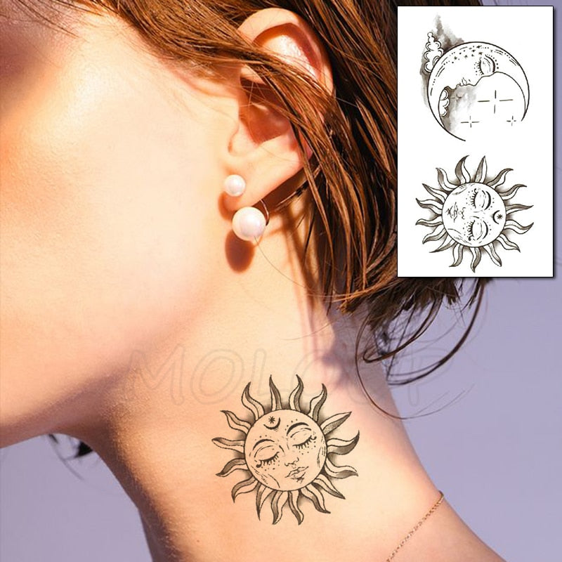 Tattoo Sticker Moon Sun Lunar Star Element Body Art Makeup Waterproof Temporary Women and Men Fake Tatoo