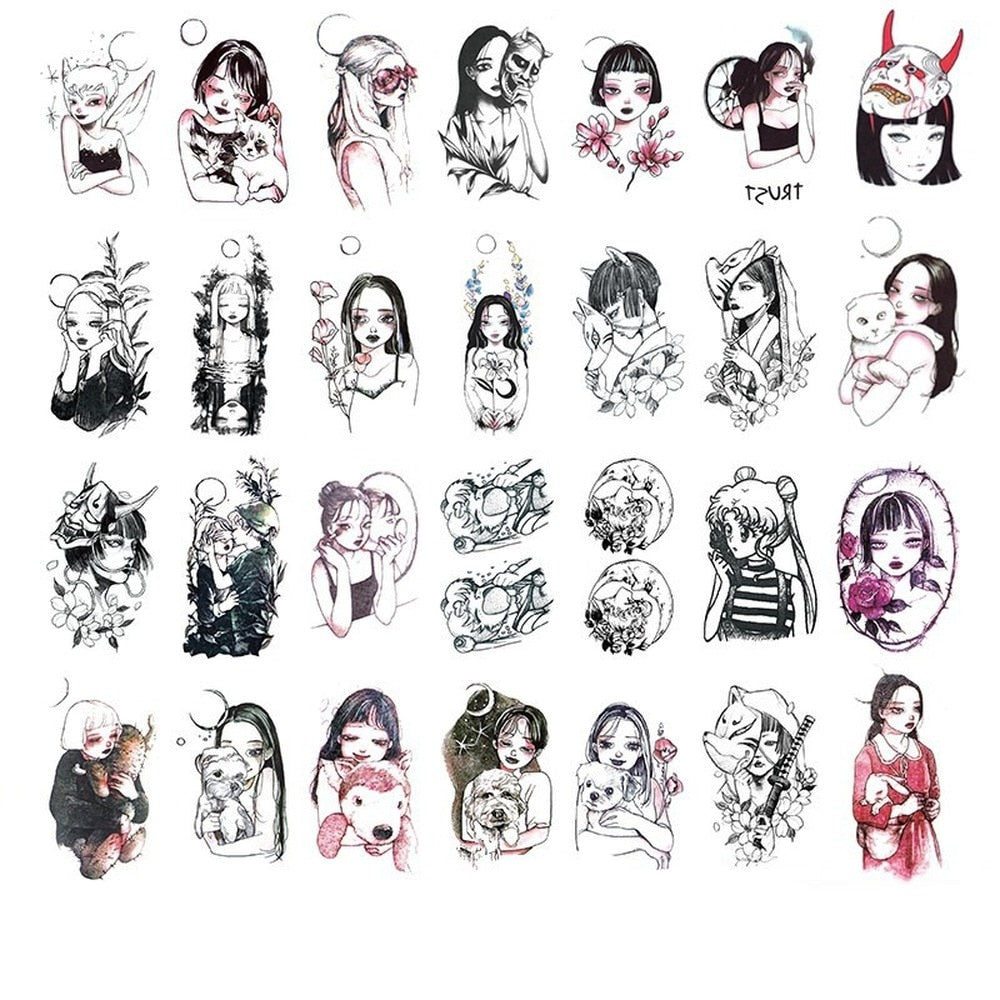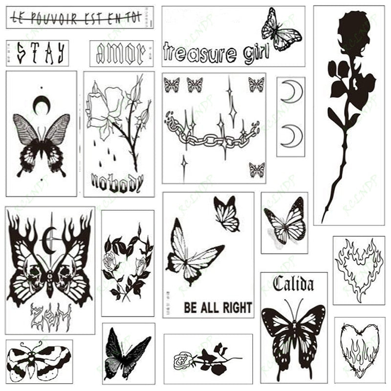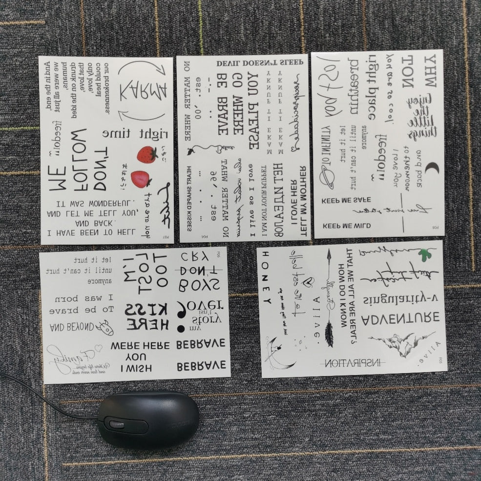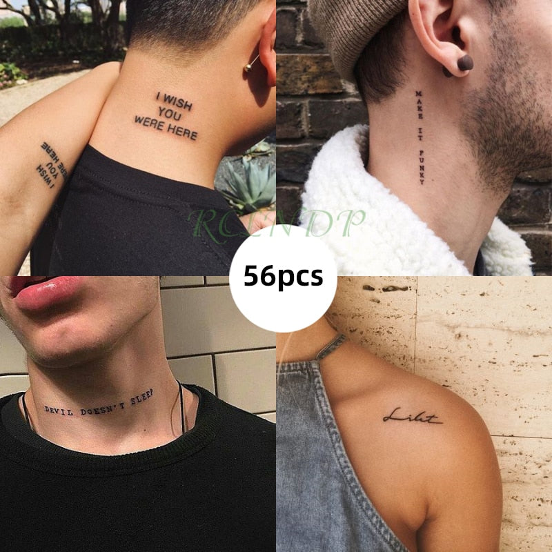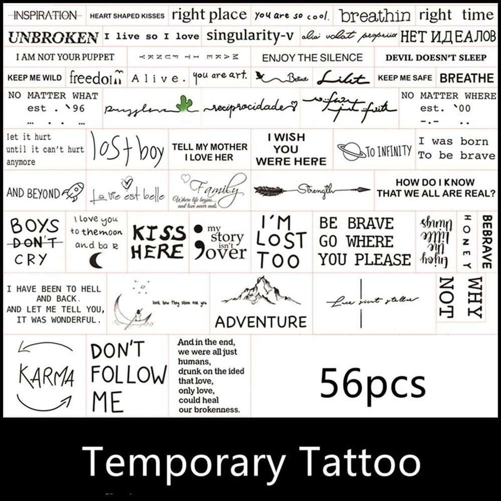 Tattoo Sticker set English sentence brave breathin kiss here Tatoo Temporary Flash Tatto Fake Cool stuff for Men Women 56 Pcs