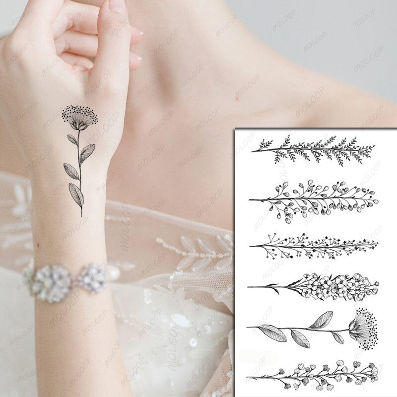 Tattoo Stickers Cute Flower Plant Hand Small Tatto Waterproof Temporary Flash Tatoo Fake Tattoos for Men Women Kids