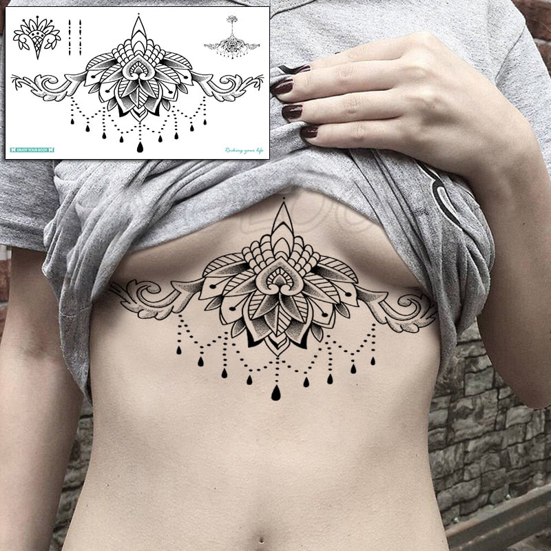 Temporary Chest Hanna Tattoo Sticker Datura Flower Dot Diamond Fake Tatoo Flash Tatto Waterproof for Women Men Big Body Art