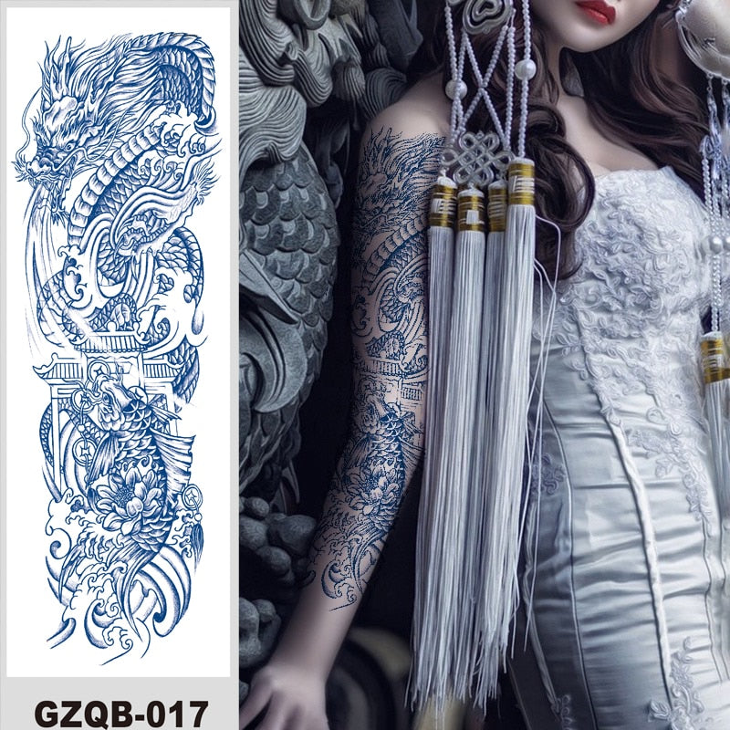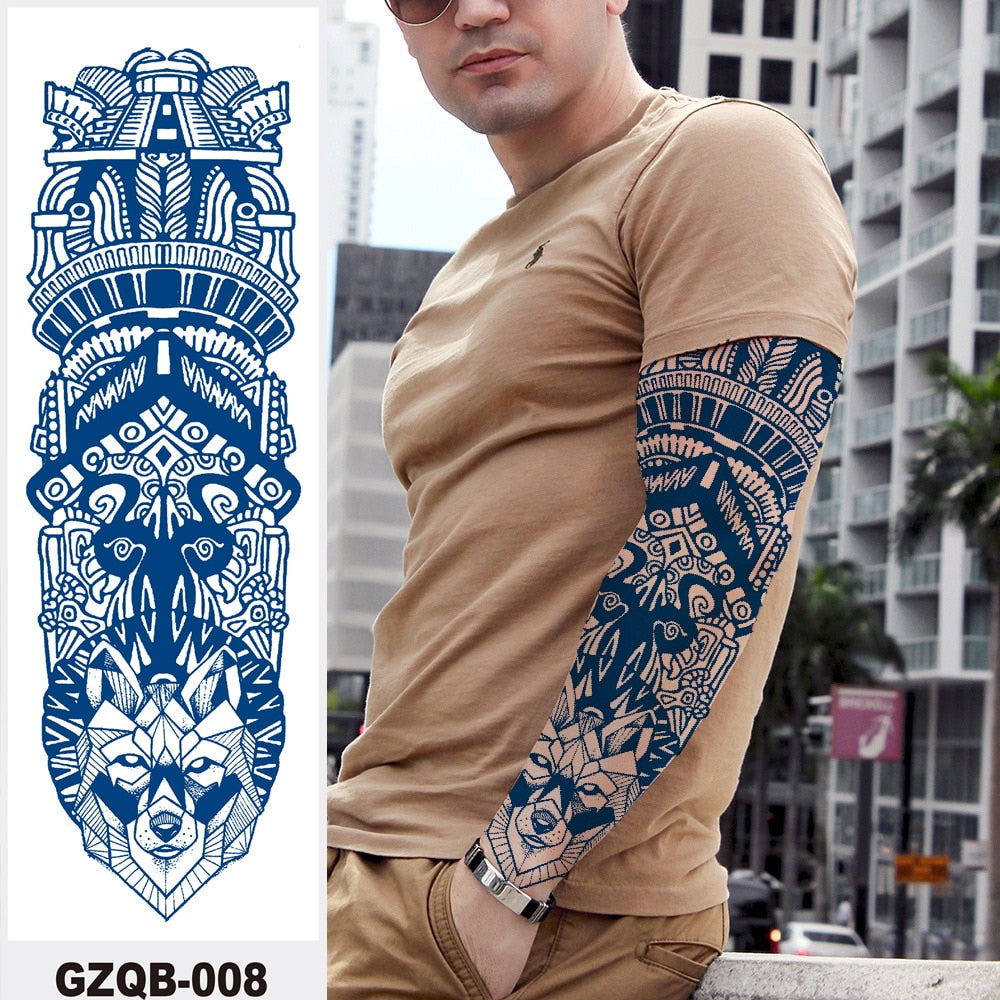 Temporary Flower Full Arm Tattoos Stickers Indian Wolf Dragon Navigator Totem Juice Ink Men Women Girl Leg Fake Tatoo Hot Sale
