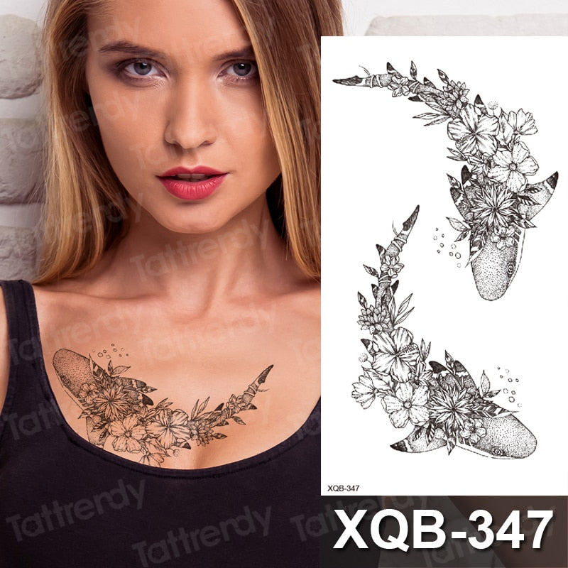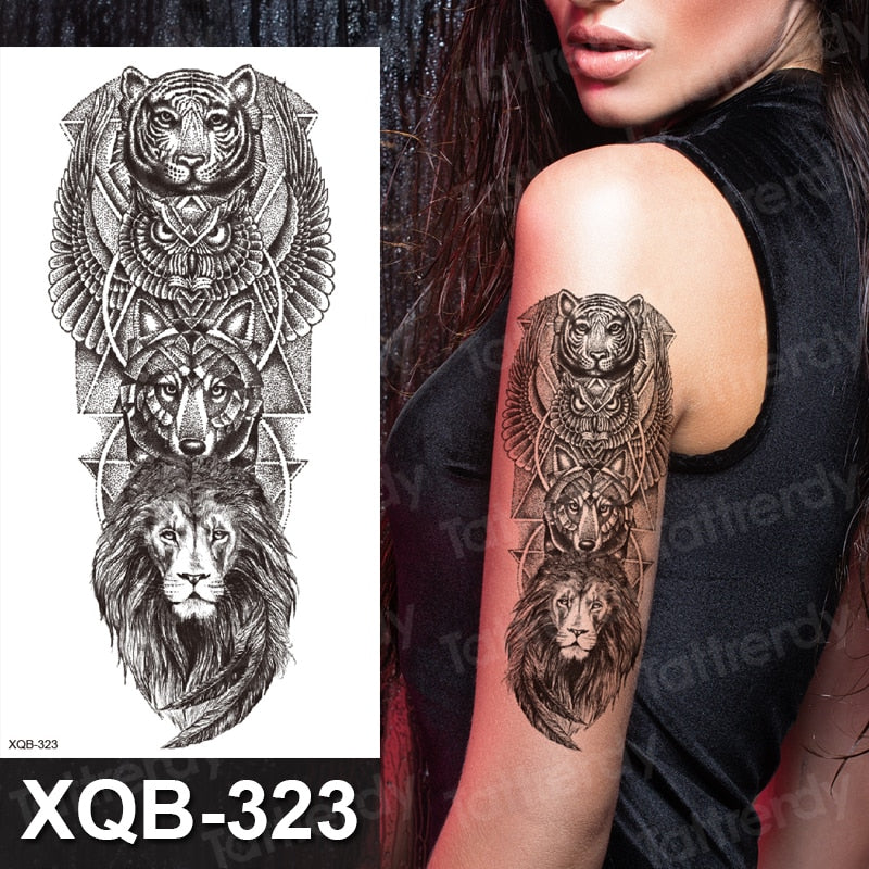 temporary tattoo flower snake dragon anime sexy body art stickers black lion skull tattoo sleeve for women men boys sexy decal