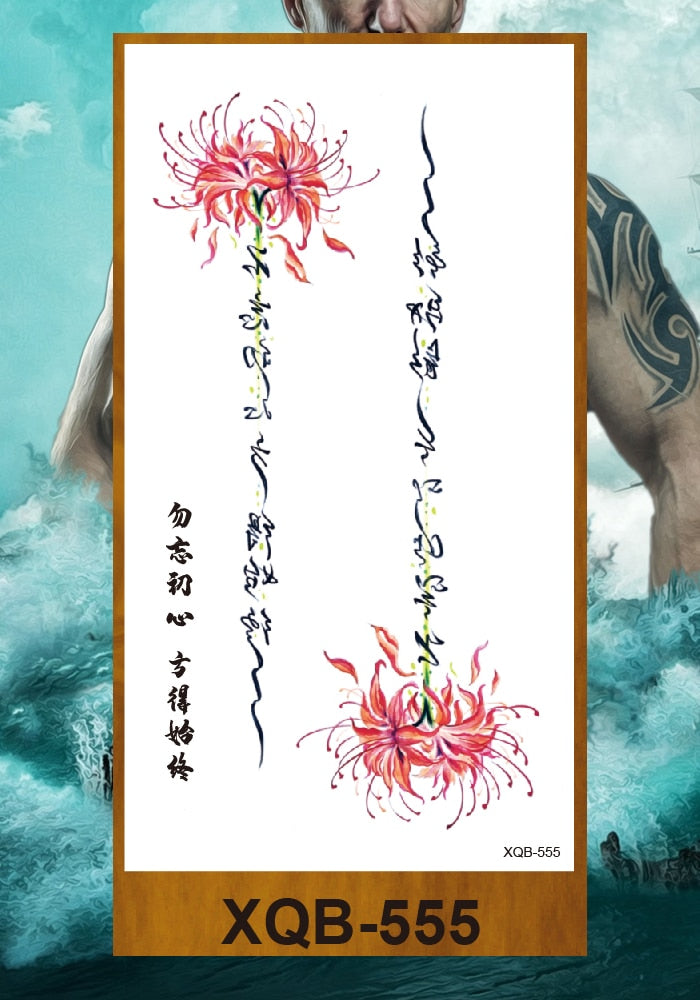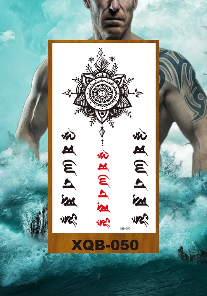 Temporary Tattoo Sticker Man Woman Girl Arm Chest Fake Neck Ankle Tatoo Art Flowers Totem Tatto Sanskrit Lines Geometric Figures