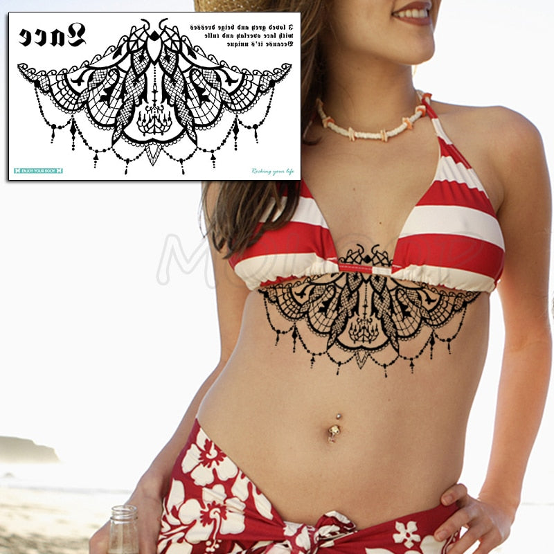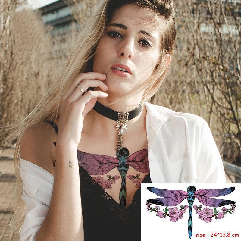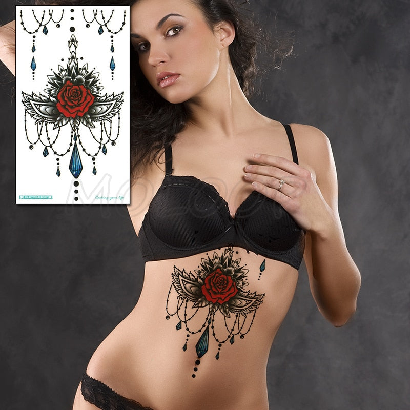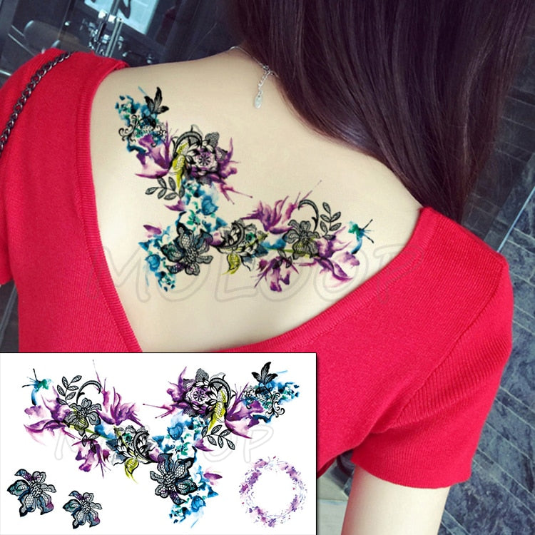 Temporary Tattoo Sticker Plant Leaf Flower Like Butterfly Sexy Chest Back Fake Tatoo Waterproof Flash Tatto Art for Woman Girl