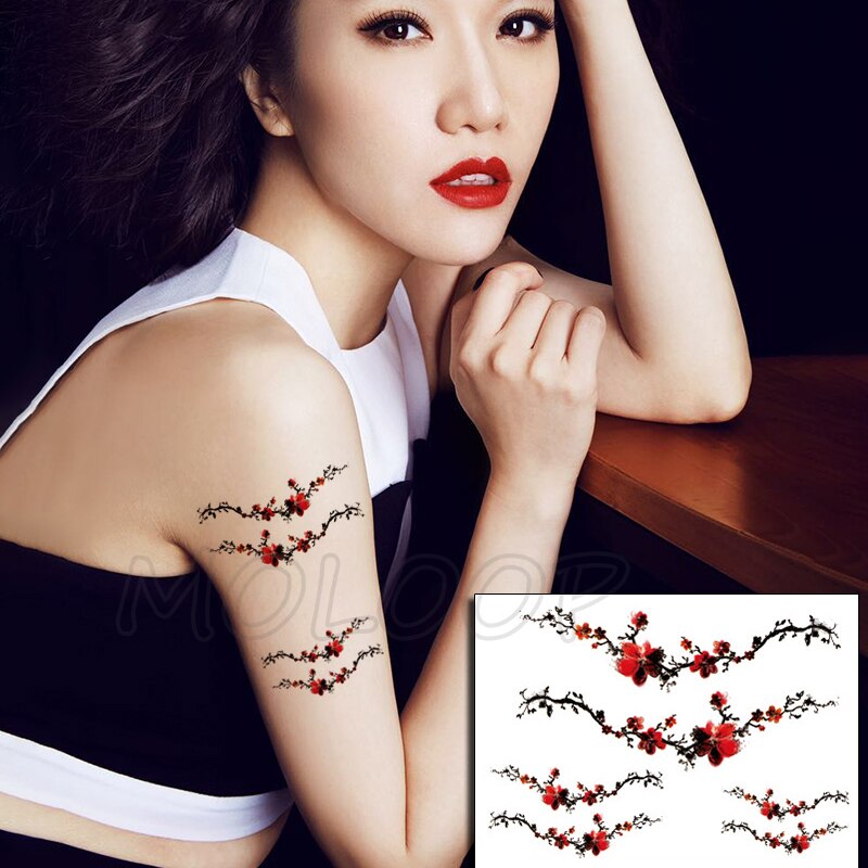 Temporary Tattoo Sticker Plum Flower Blossom Ink Wash Painting Sexy Tatoo Fake Tattoos for Women Men Body Art