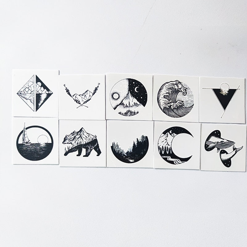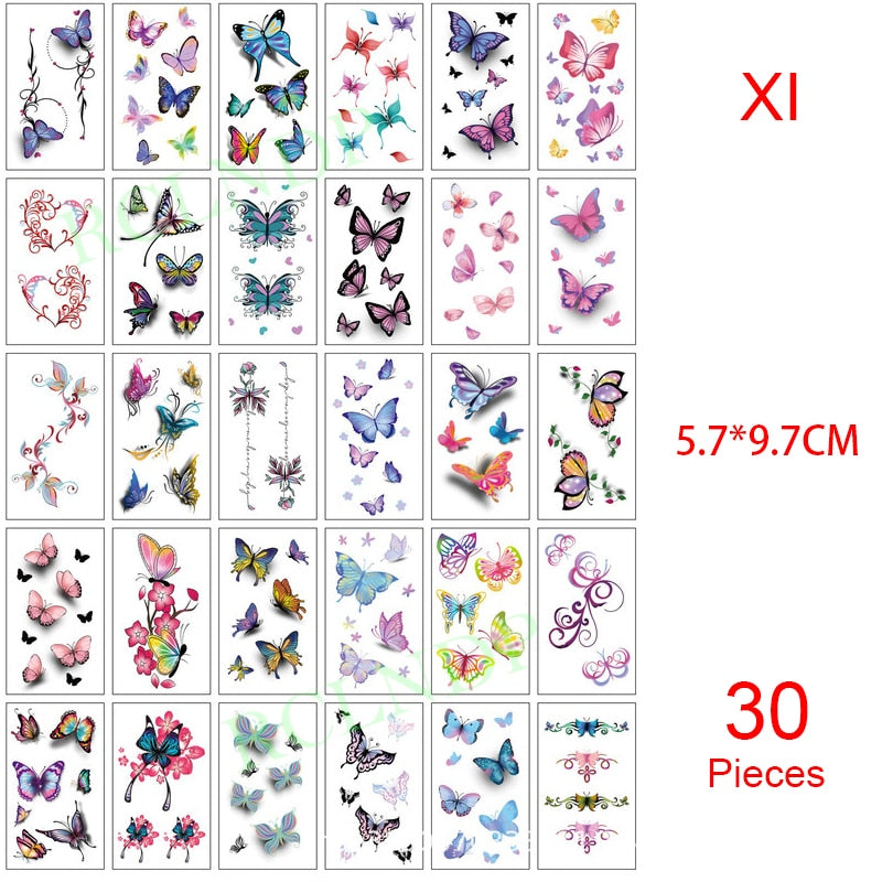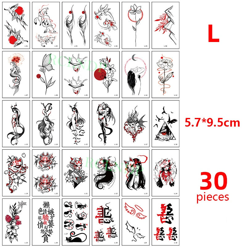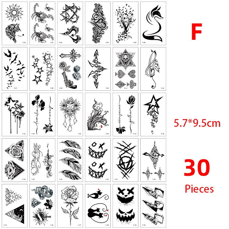 Temporary Tattoo Sticker Set Moon Skull Cross Butterfly Tatoo Flash Tatto Fake Waterproof Stickers for Men Women Girls 50 Pcs