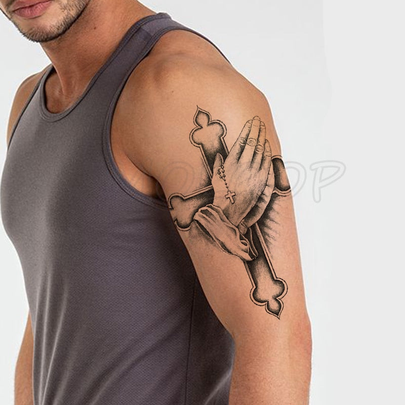 Temporary Tattoo Stickers Hands Together Peace Cross Fake Tatto Waterproof Tatoo Back Leg Arm Belly Big Size for Women Men Girl