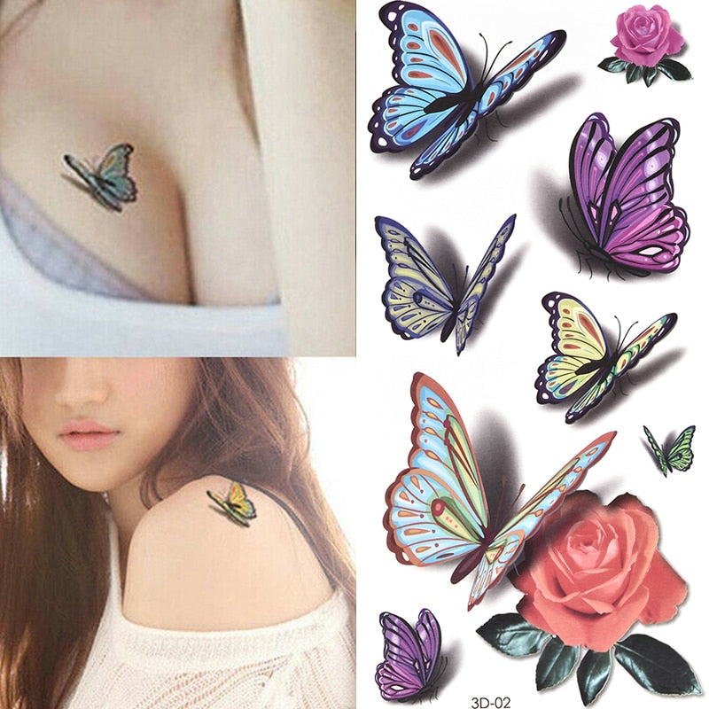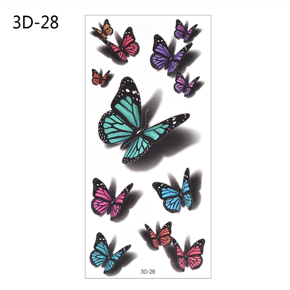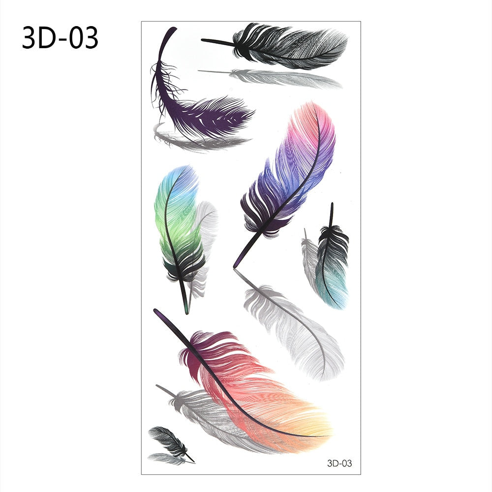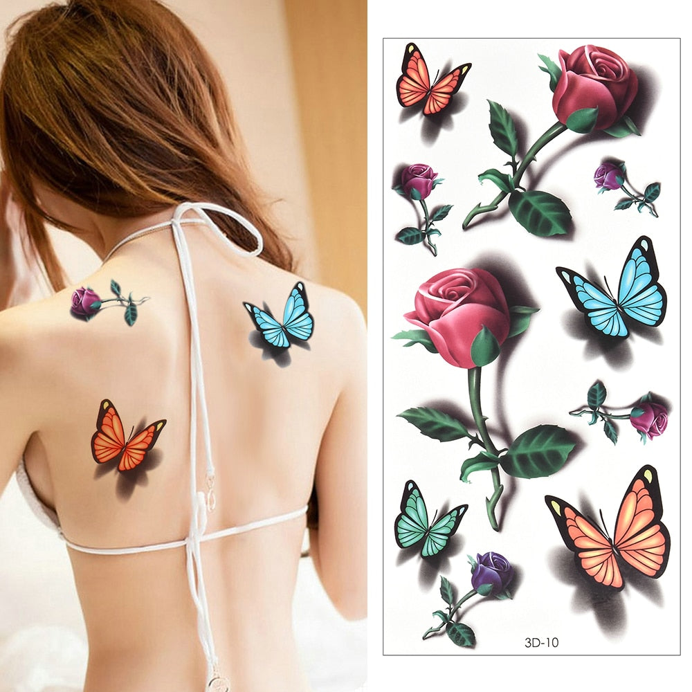 Temporary Tattoos Sticker for Women Body Art Tattoo Sticker 3D Butterfly Rose Flower Feather Tattoo Waterproof Halloween Gift
