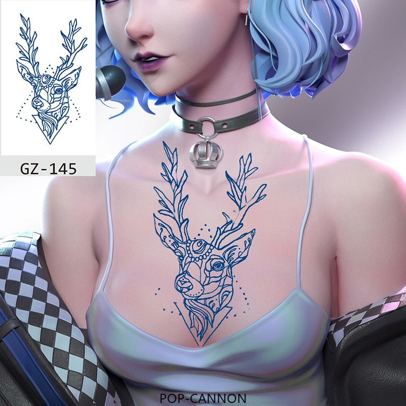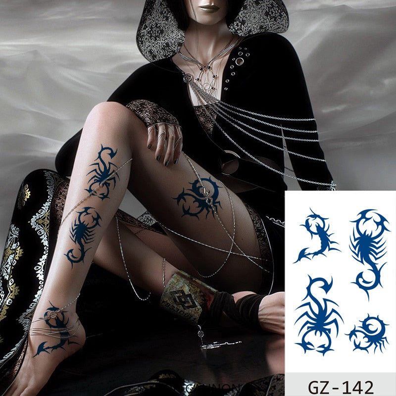 Temporary Tattoos Stickers Geometry Flower Snake Scorpion Juice Ink Lasting Waterproof Arm Chest Waist Hip Realistic Fake Tatoo