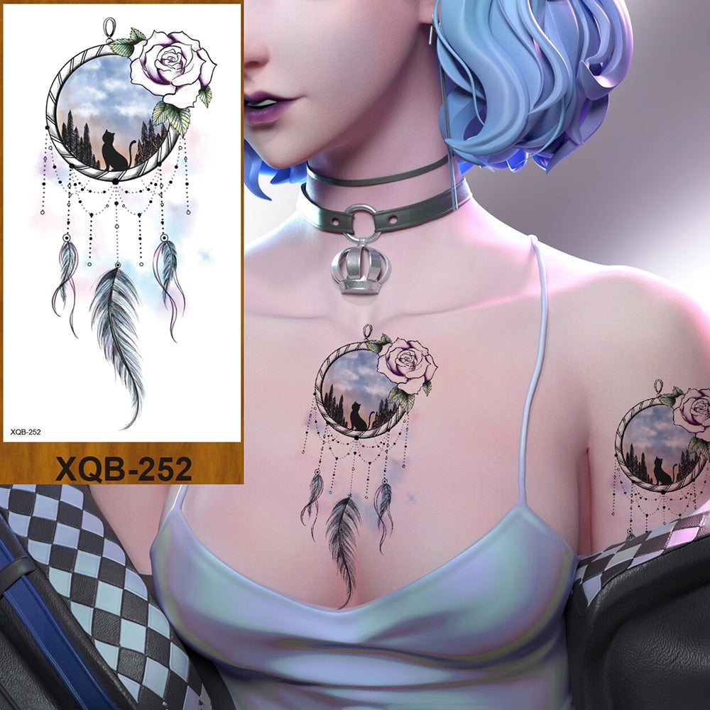 Temporary Tattoos Stickers Woman Arm Neck Chest Fake Necklace Tattos Girl Flower Cute Pussy Cat Body Makeup Waterproof Serpenti