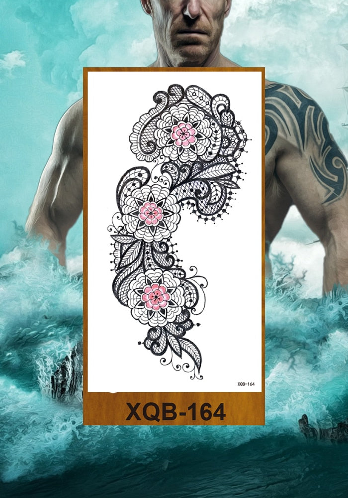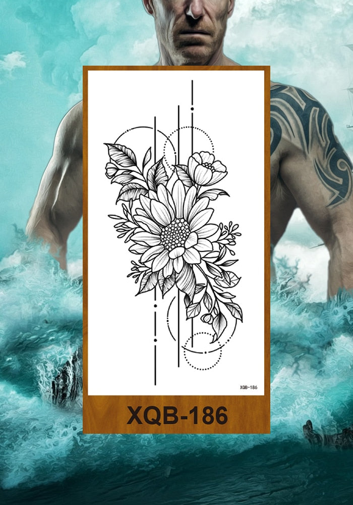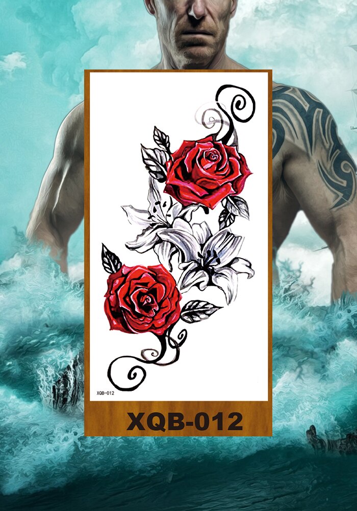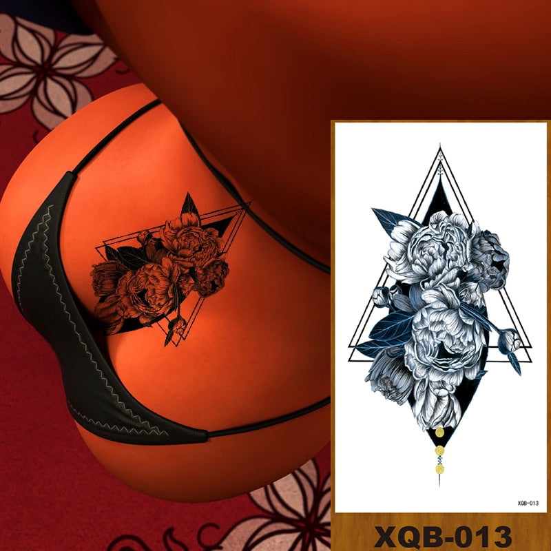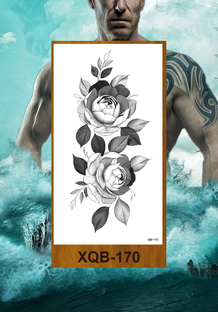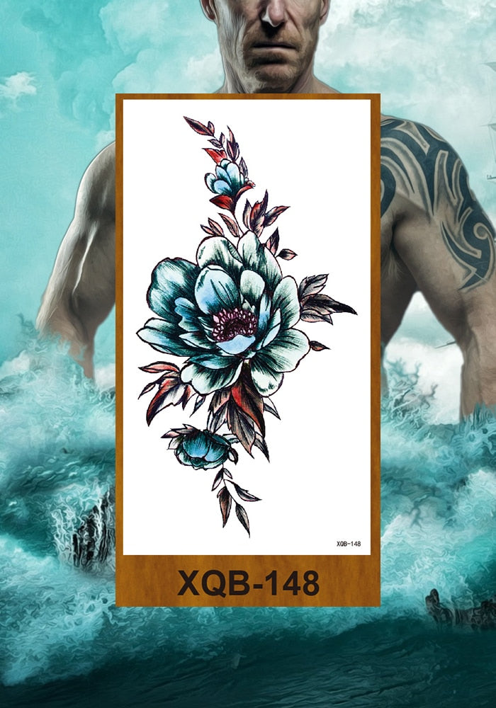 Temporary Tattoos Stickers Women Girl Chest Arm Fake Tatoo Lotus Peony Rose Magnolia Flowers Totem Face Body Makeup Waterproof